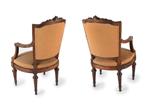 Coppia di poltrone Luigi XVI in noce, Liguria, fine del XVIII secolo