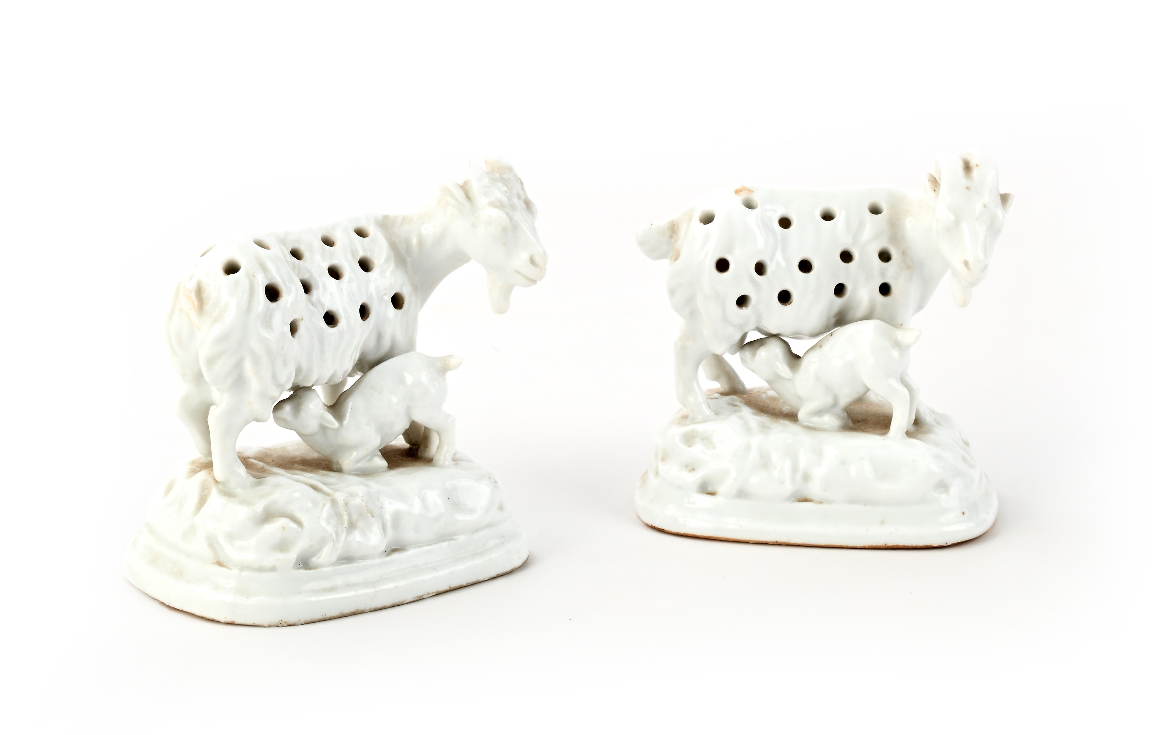 raffiguranti una capra con cucciolo su base a forma di zolla erbosa, modellate per essere disposte "vis à vis"