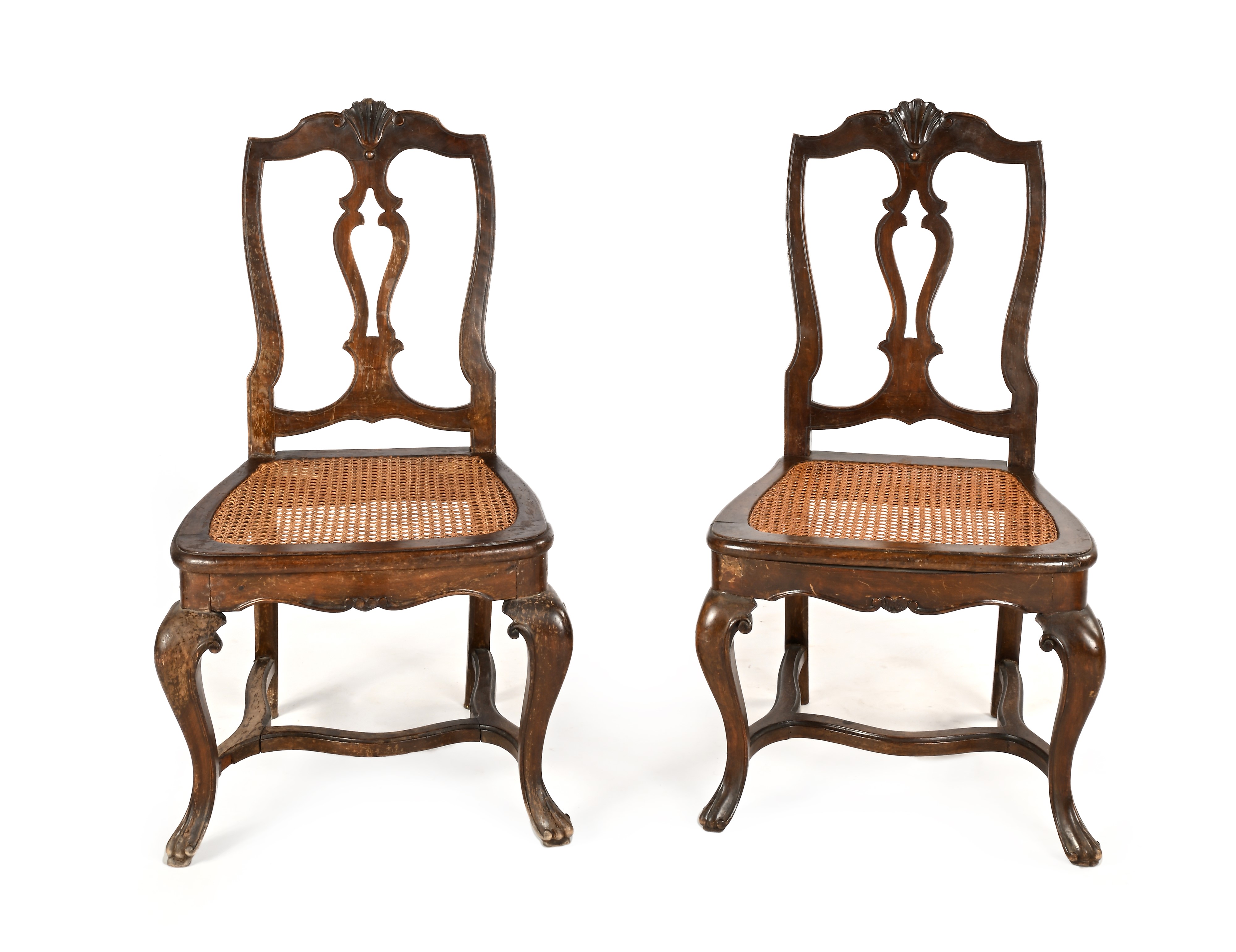 Coppia di sedie da camino in mogano, Veneto, XVIII secolo