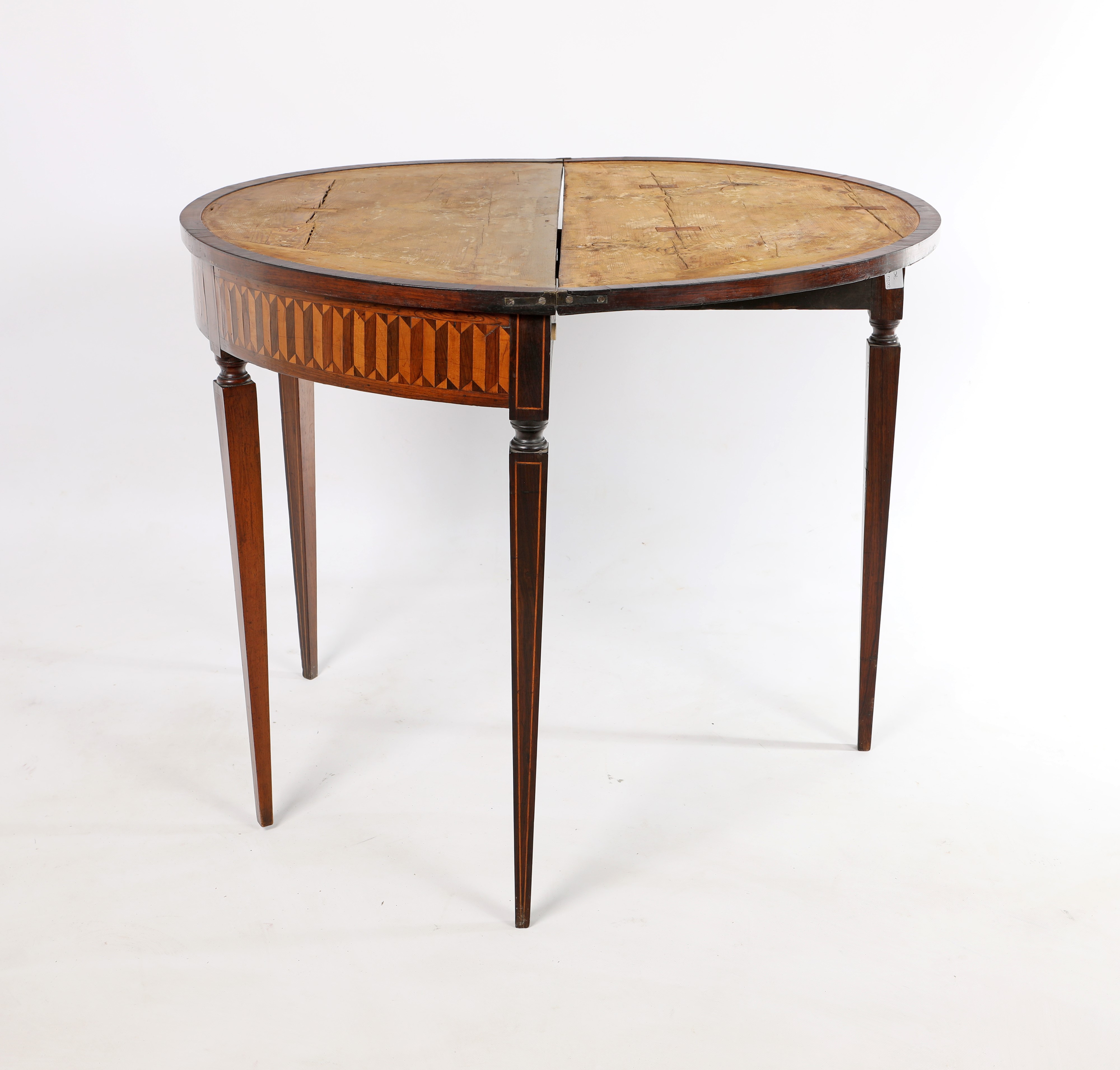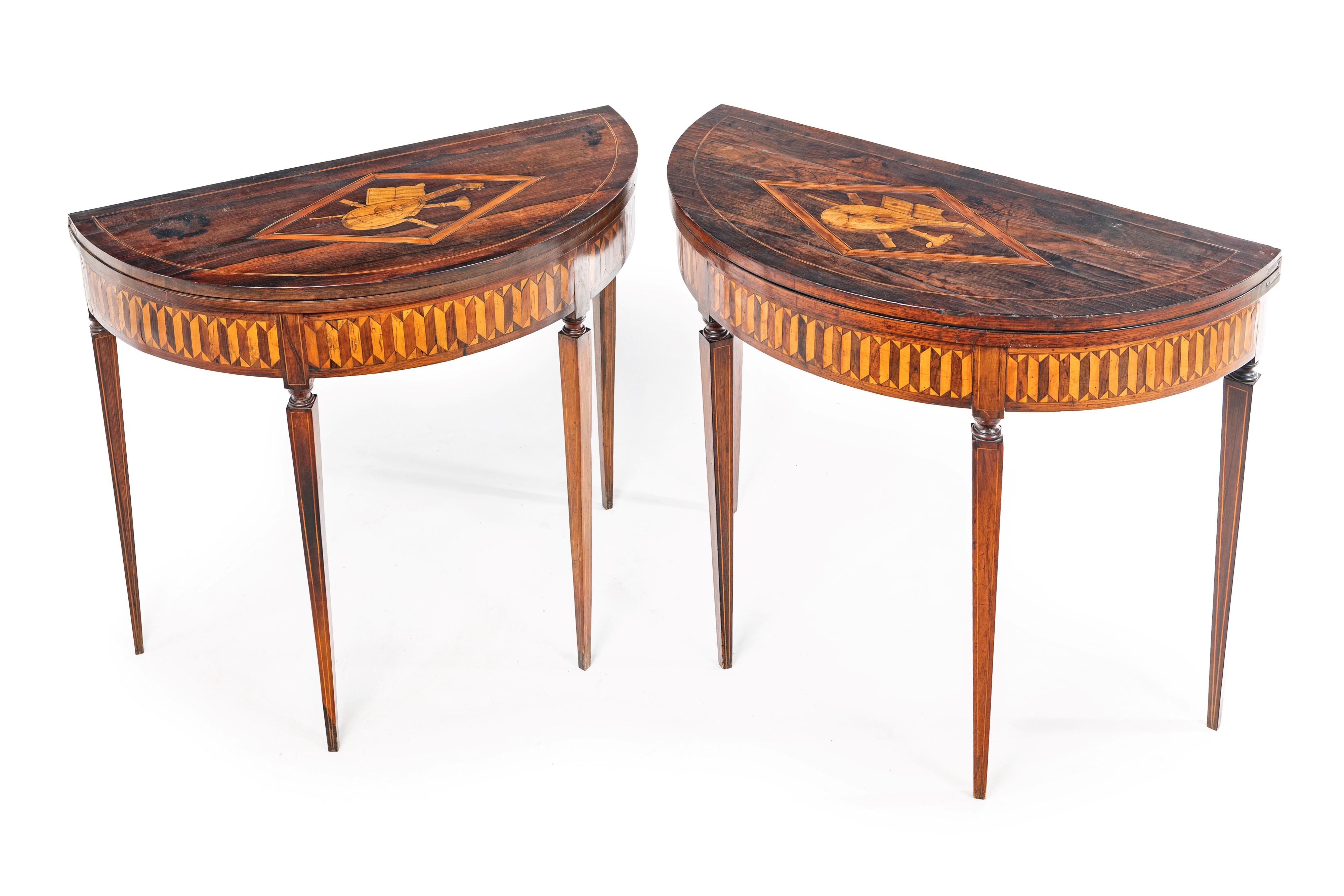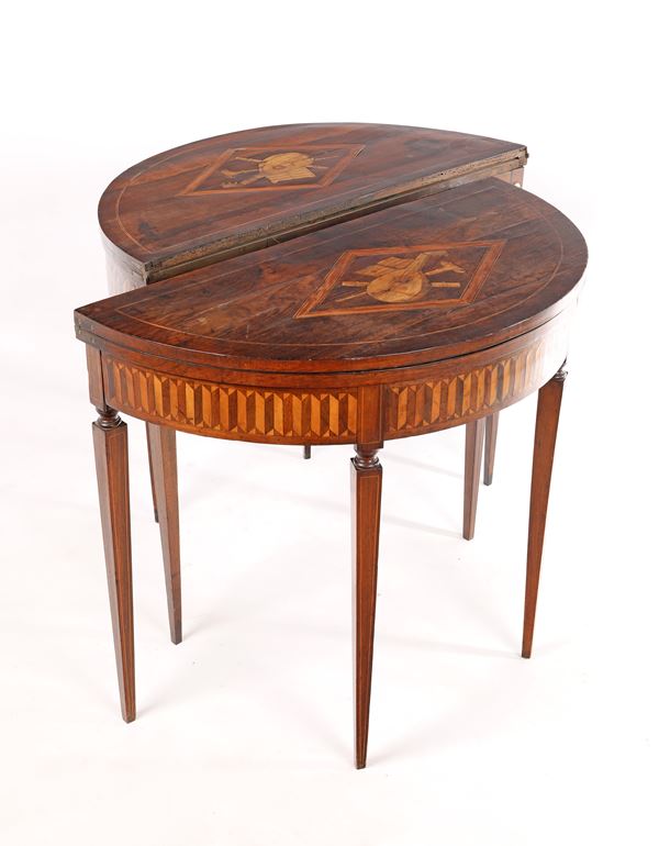 Coppia di tavolini da gioco a demi-lune con piano a libretto, Italia settentrionale, XVIII secolo