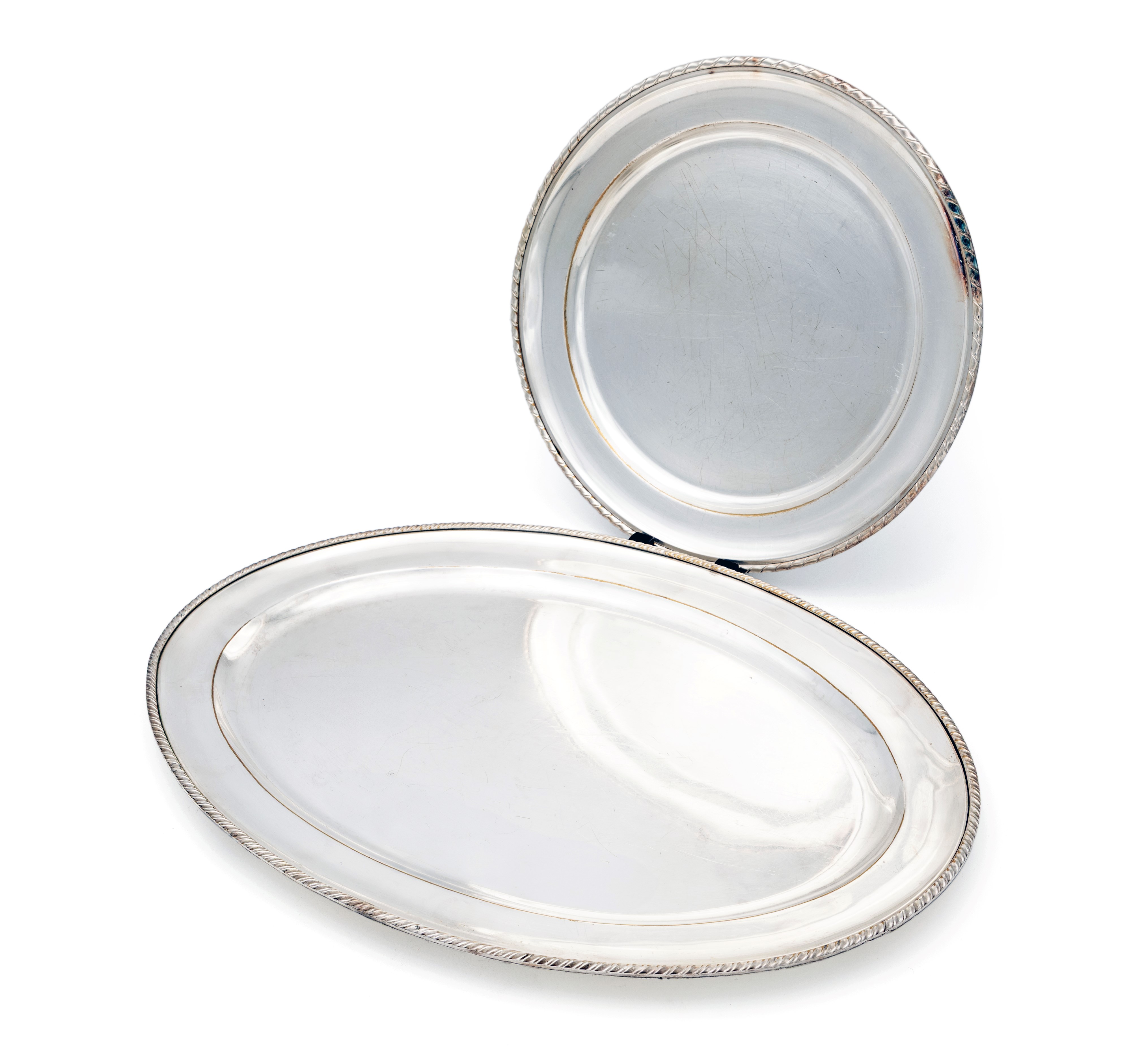 Due piatti da portata in metallo argentato dalle analoghe caratteristiche