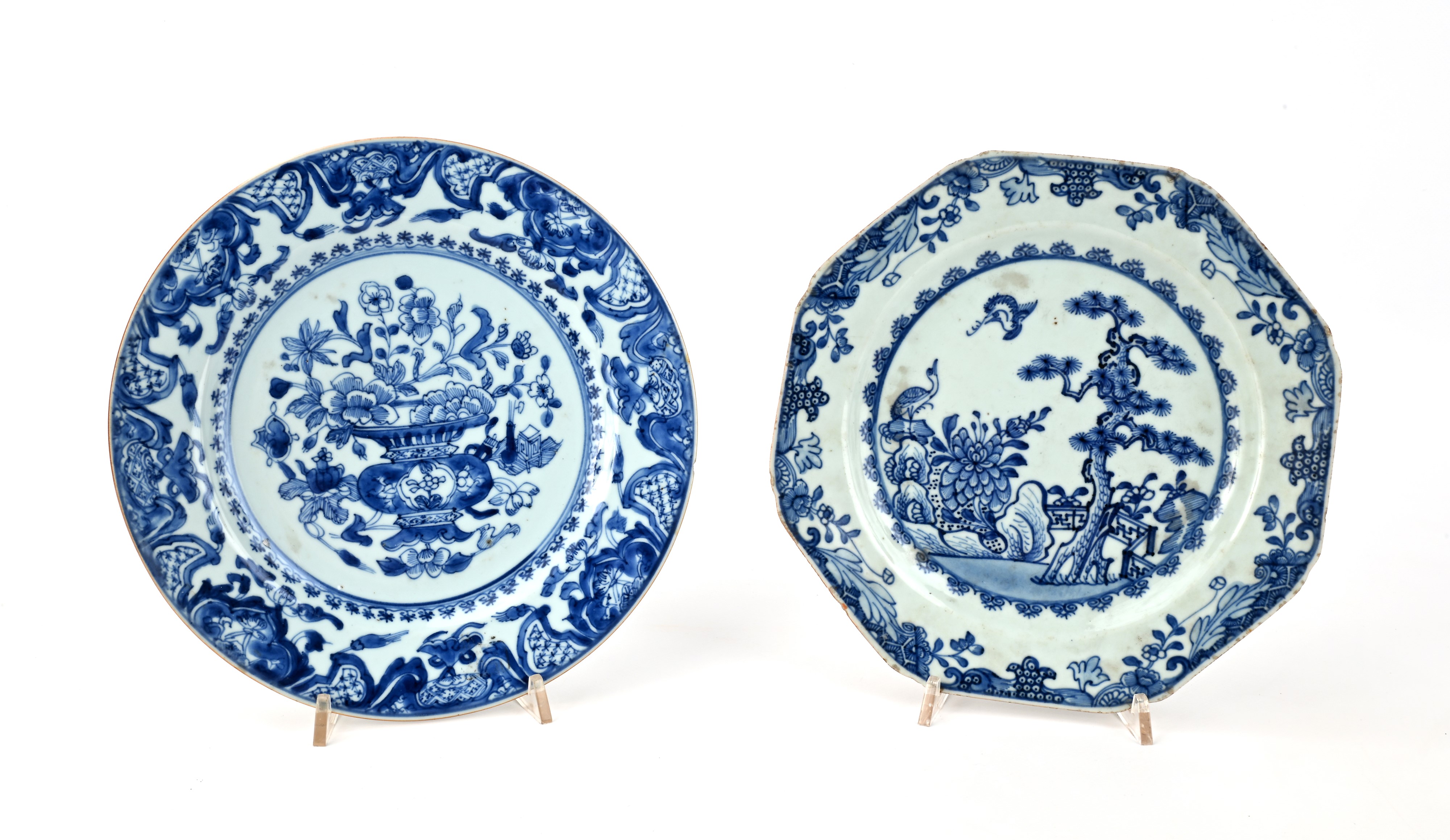Due piatti diversi in porcellana bianca e blu, Cina