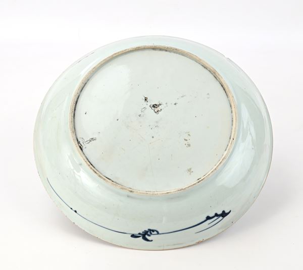 Grande piatto in porcellana con fitta decorazione in blu a motivi floreali, Cina, XVIII secolo