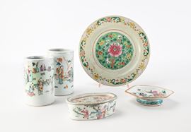 Lotto composto da cinque oggetti in porcellana, Cina, periodo della Repubblica