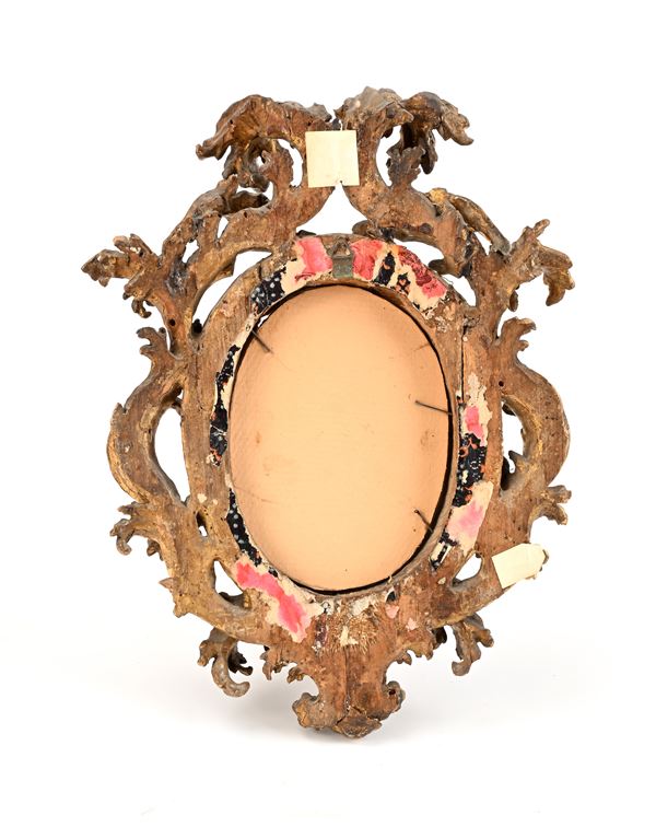 Piccola cornice in legno scolpito e dorato, XVIII secolo