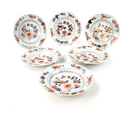Sei fondine in porcellana Imari, Cina, Compagnia delle Indie, XVIII secolo