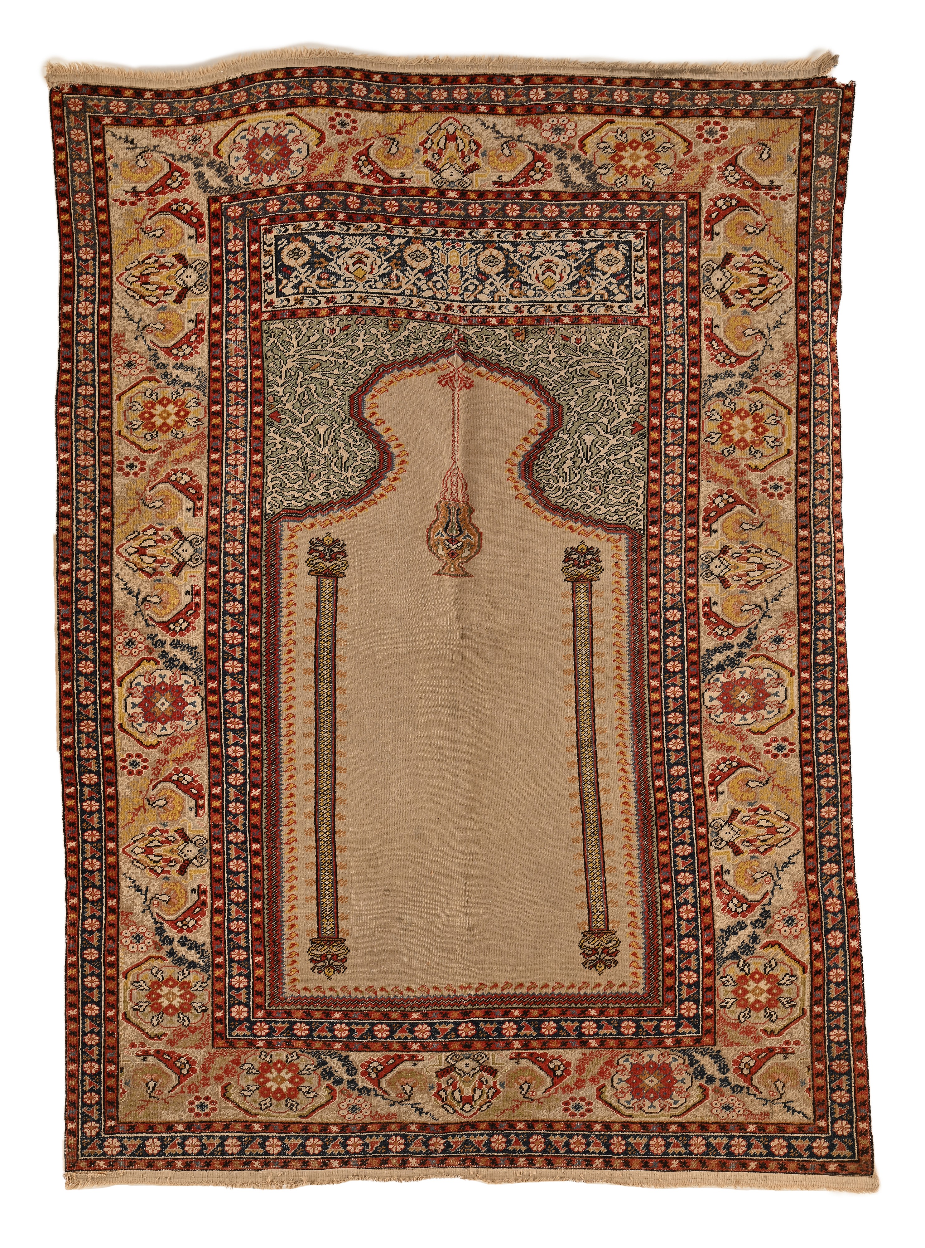 Tappeto da preghiera Kaiseri fondo avorio, Anatolia, inizi del XX secolo