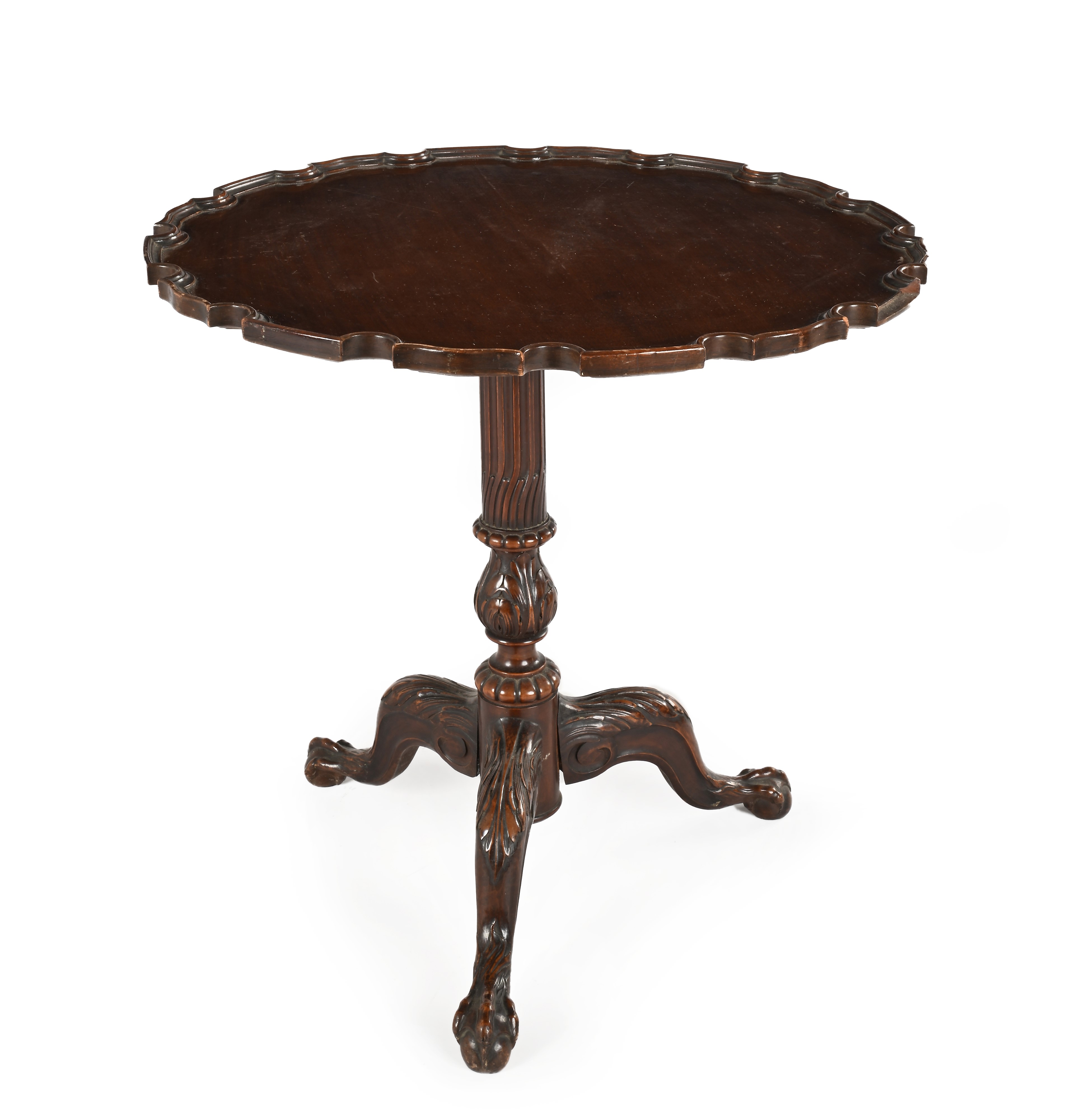 Tavolino in mogano con piano circolare caratterizzato da incavi lungo la circonferenza, Inghilterra, fine XIX secolo