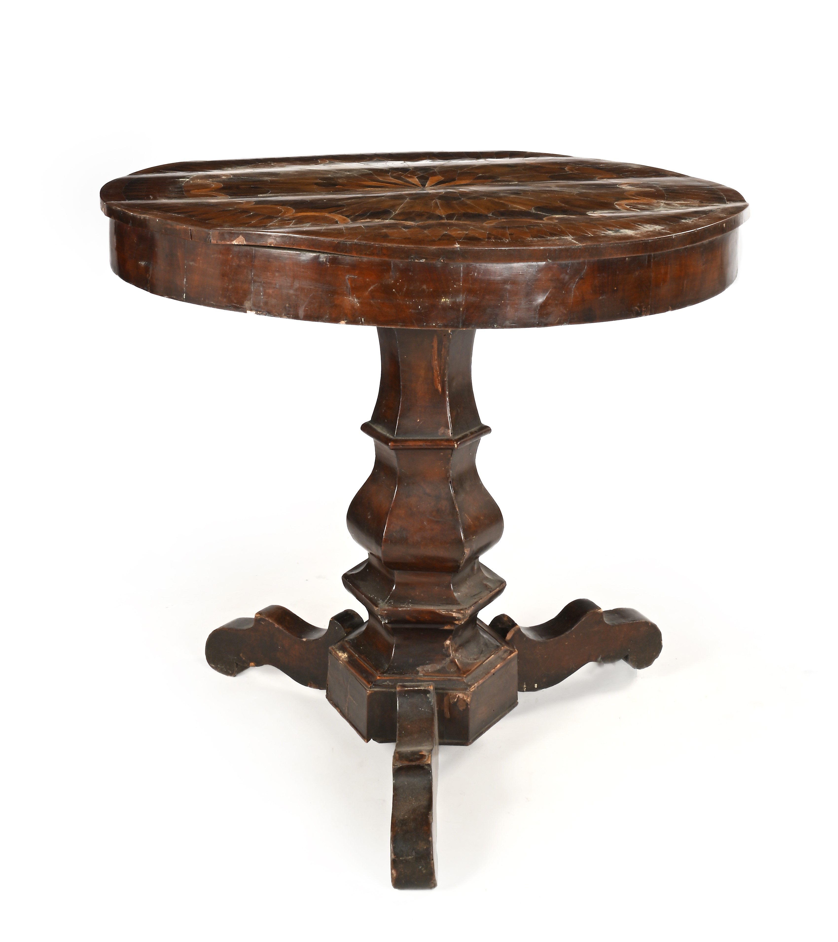 Tavolo circolare in legno intarsiato, XIX secolo