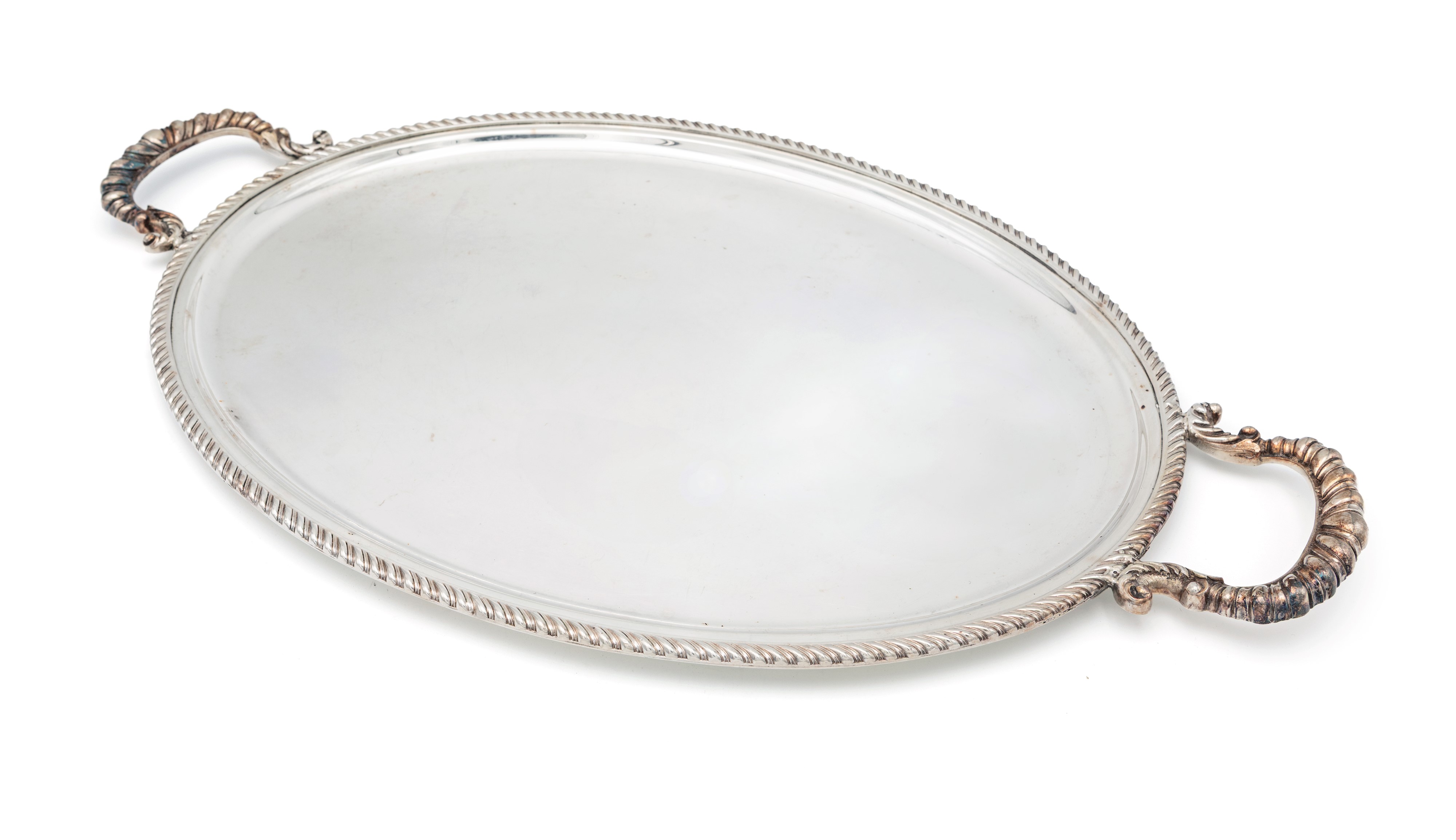 Vassoio ovale con manici in metallo argentato, Fornari, Roma