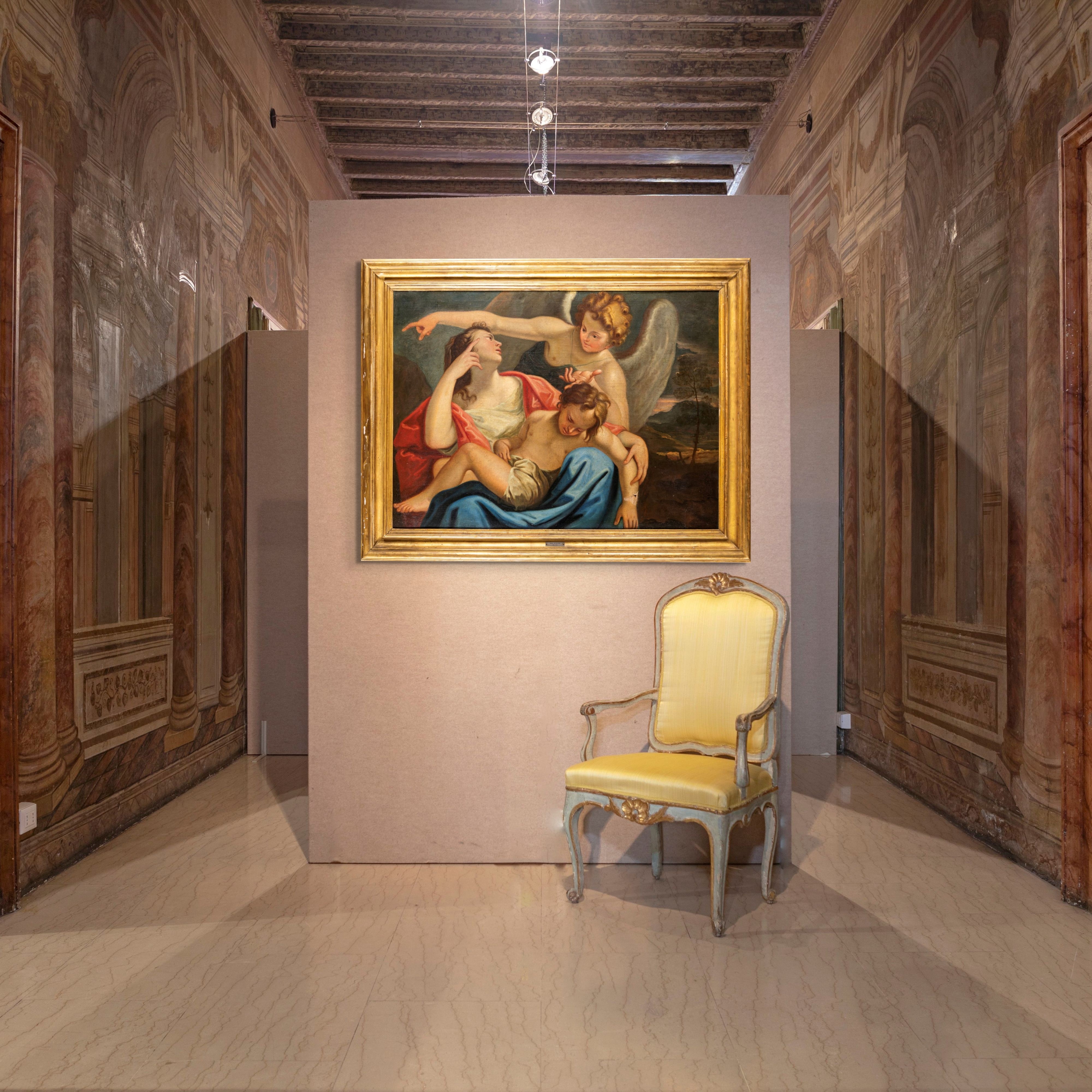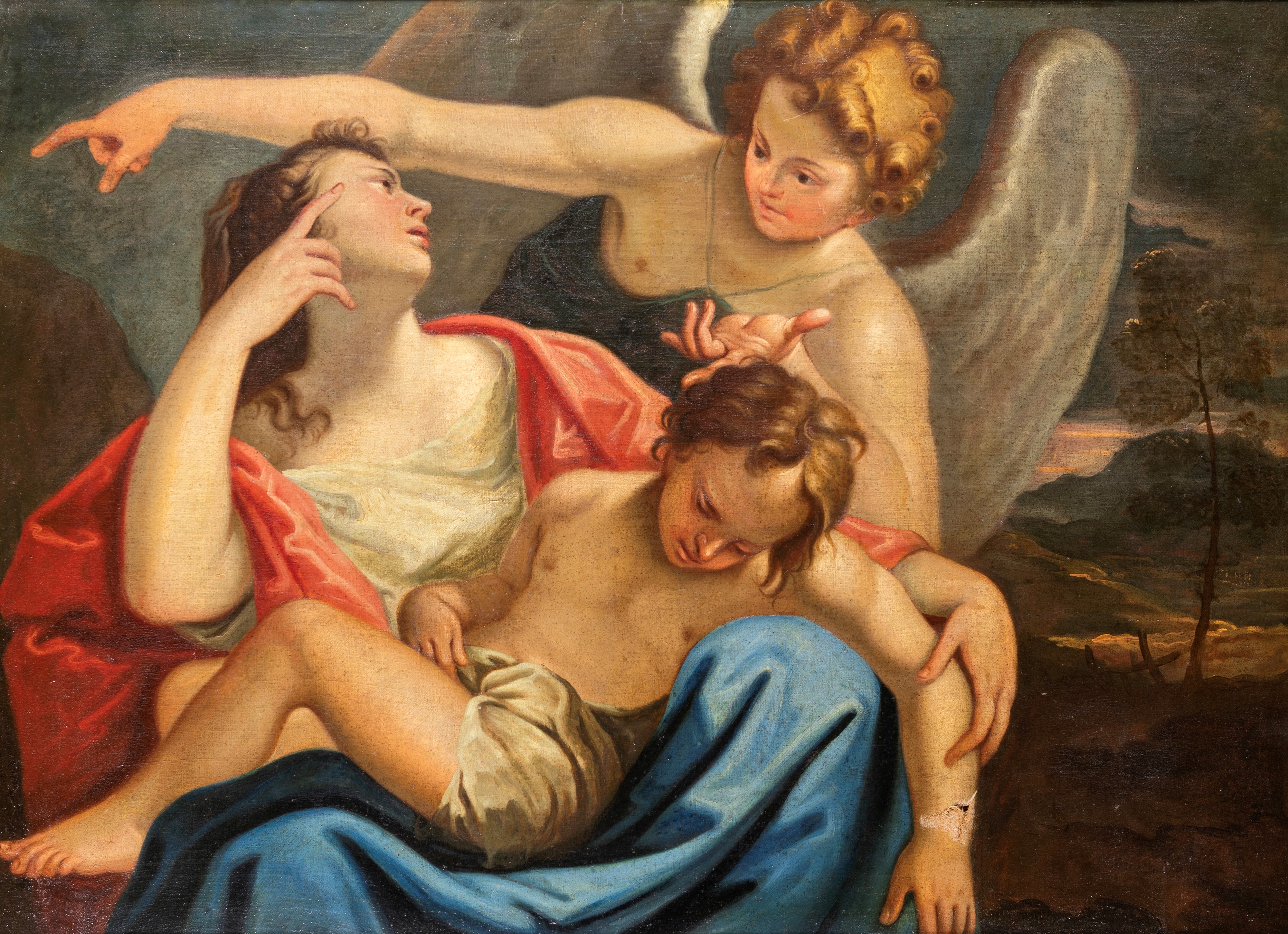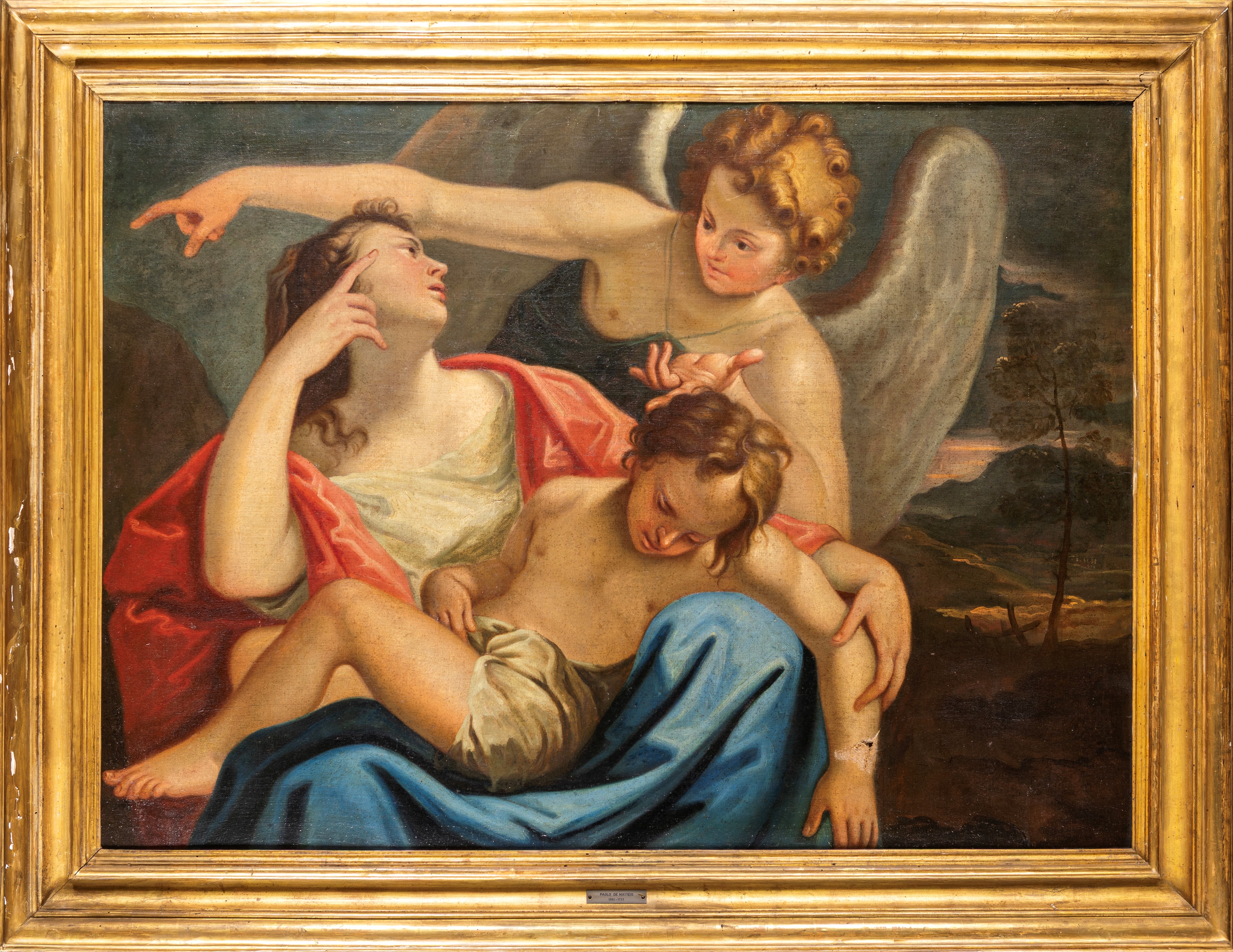 Il soggetto del dipinto è tratto dalla Genesi (16,3) e raffigura Agar con il figlio Ismaele, avuto da Abramo, nel deserto di Beersceba, dove fu scacciata da Sara, moglie di Abramo. Un angelo rinnova ad Agar la promessa del Signore di fare di Ismaele una grande discendenza.
