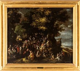 Allievo, forse, di Gillis van Coninxloo, l’artista fu attivo in Italia intorno al 1595, contribuendo significativamente alla diffusione dei caratteri peculiari della scuola di Frankenthal, in particolare per quanto concerne le ambientazioni paesistiche in soggetti di carattere mitologico, biblico o tratti dalla storia classica. Il dipinto in esame si configura come esemplare rappresentativo di tale poetica espressiva, basata su una narrazione densa, popolata da una moltitudine di figurine, in cui la scena principale raramente domina, risultando piuttosto assorbita nell’insieme compositivo. Quest’ultimo si distingue per un equilibrato bilanciamento tra vivaci notazioni figurative, rese con cromatismo brillante e gradevole, e puntuali sottolineature paesaggistiche, chiaroscurate e ben delineate — tipiche, in questo caso, le imponenti querce.