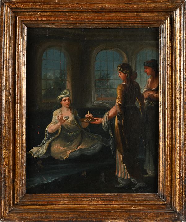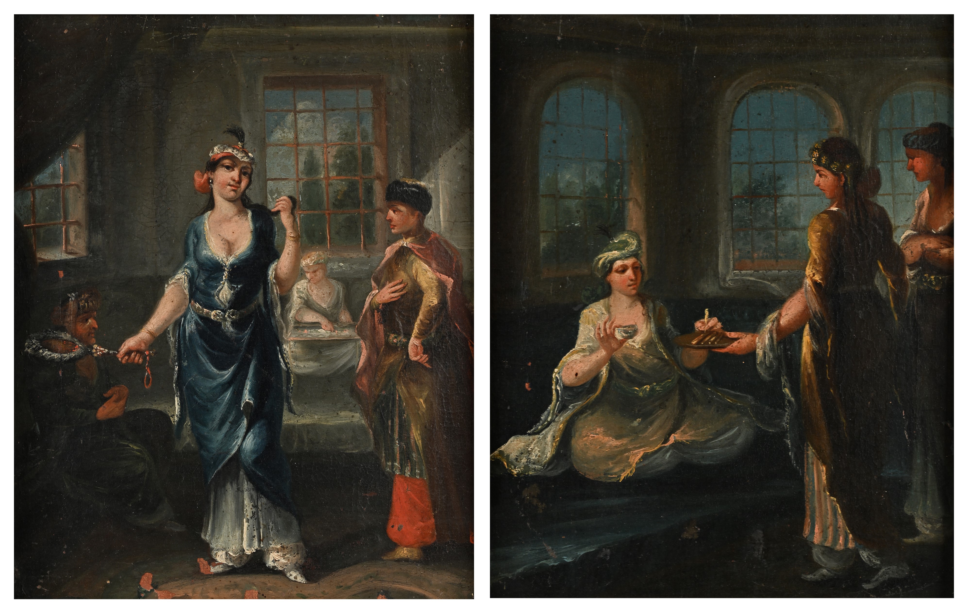 La nostra coppia di dipinti riflette la vita domestica delle donne della classe alta della società ottomana e suggerisce l'attribuzione a Vanmour o a uno dei suoi collaboratori per composizione e vicinanza stilistica.
