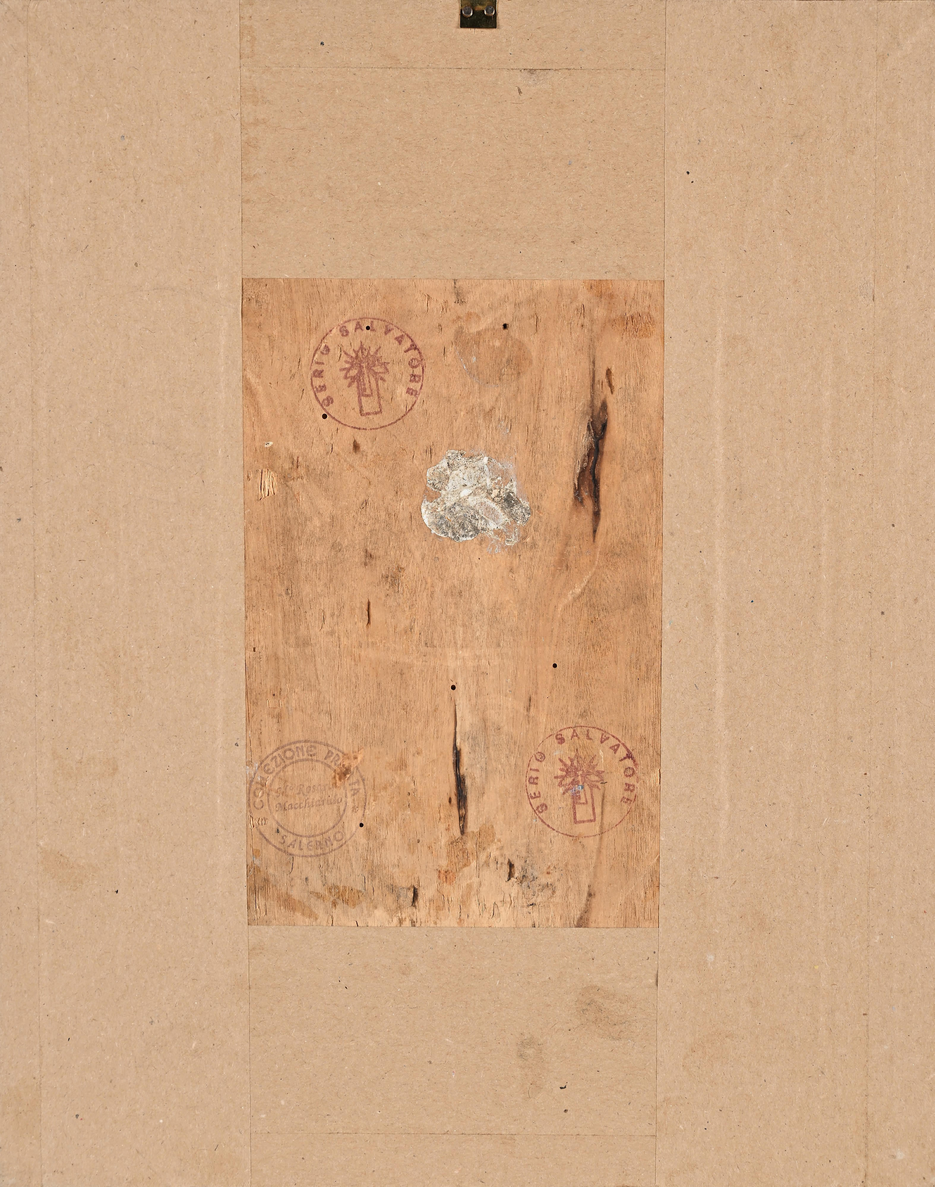 Sul retro timbri 'SERIO SALVATORE' e 'COLLEZIONE MACCHIARULO, SALERNO'