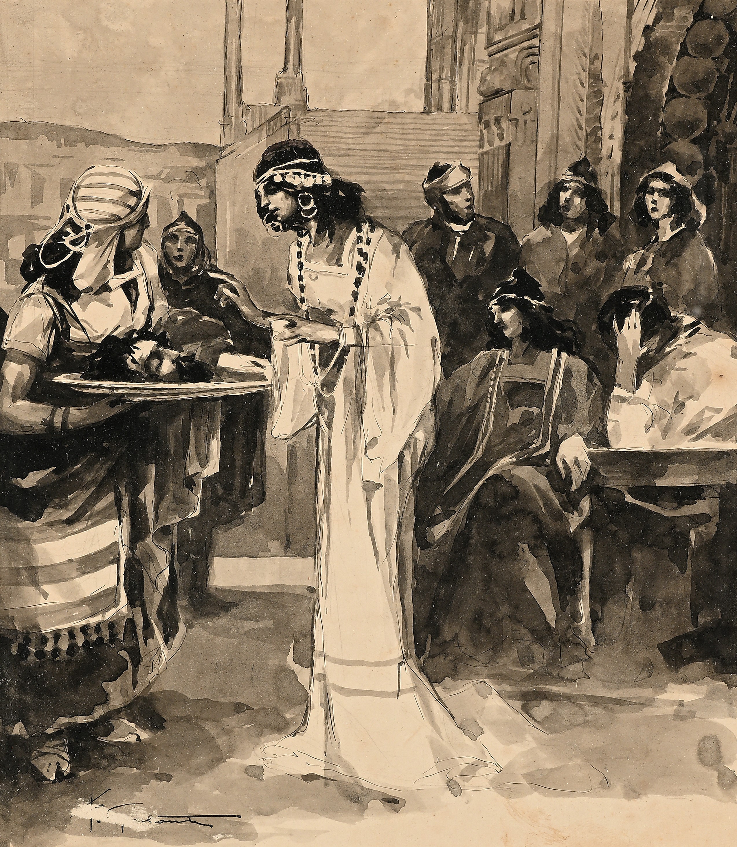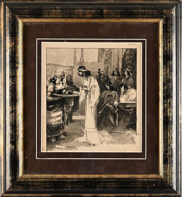 Si tratta della tavola originale per la copertina della versione illustrata italiana della ‘Salomè’ di Oscar Wilde, edita dalla Libreria Editrice Bideri di Napoli nel 1907.