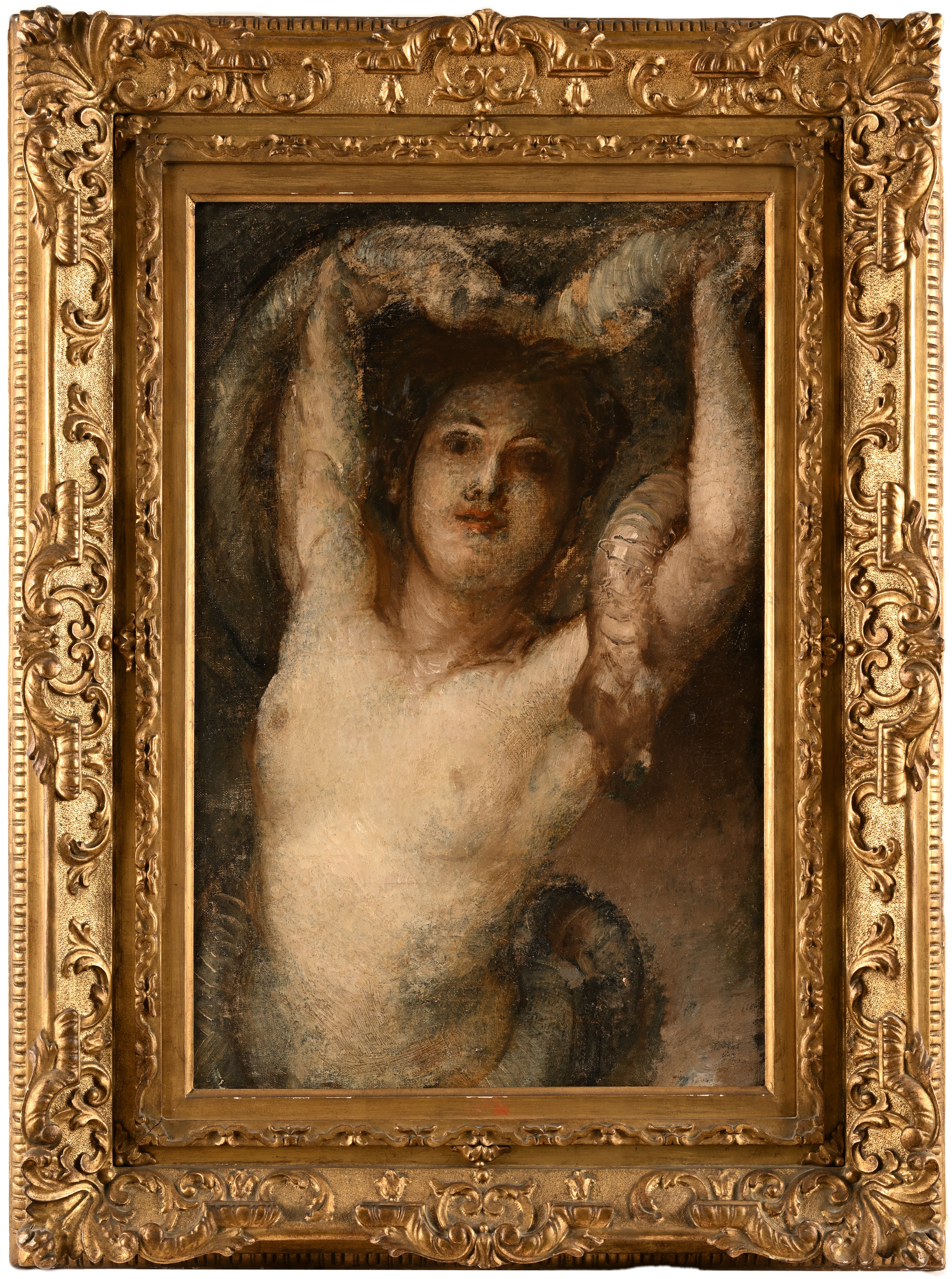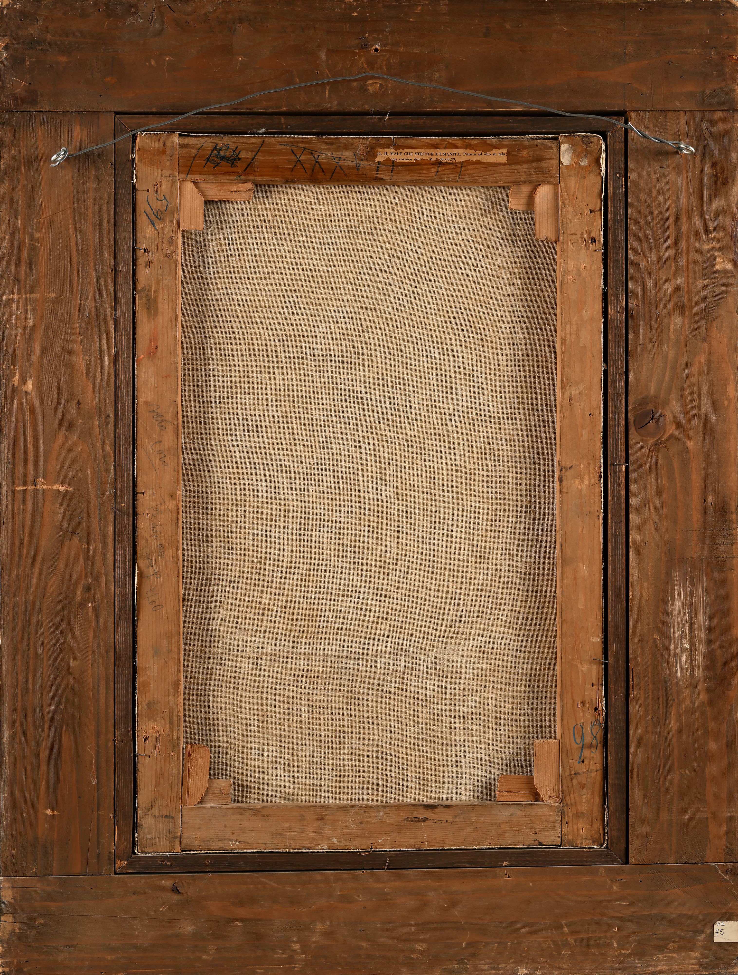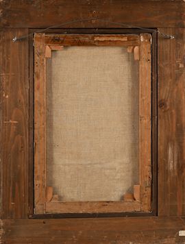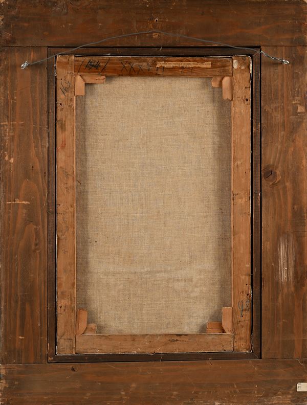 Sul retro, sul telaio, antico cartellino con riferimenti al dipinto.