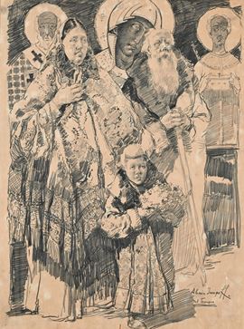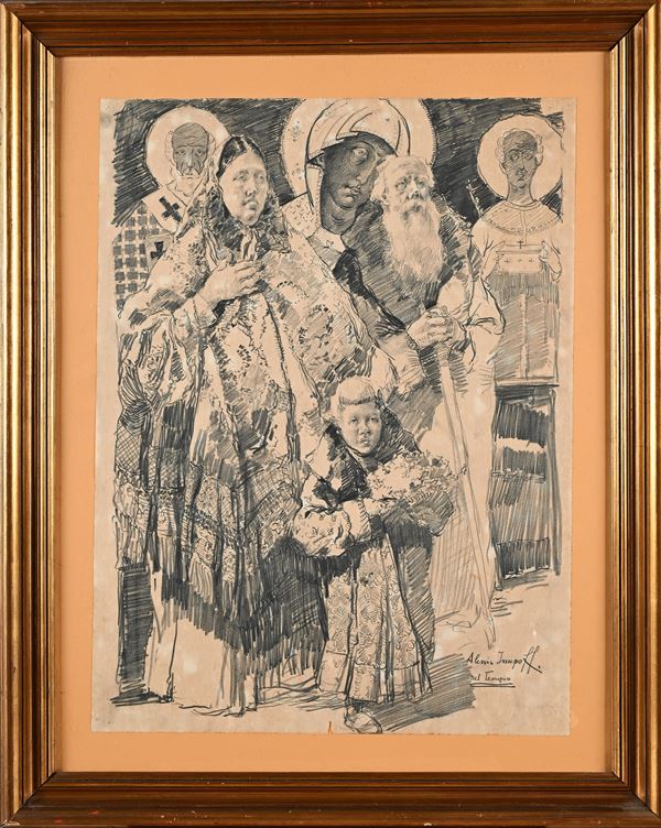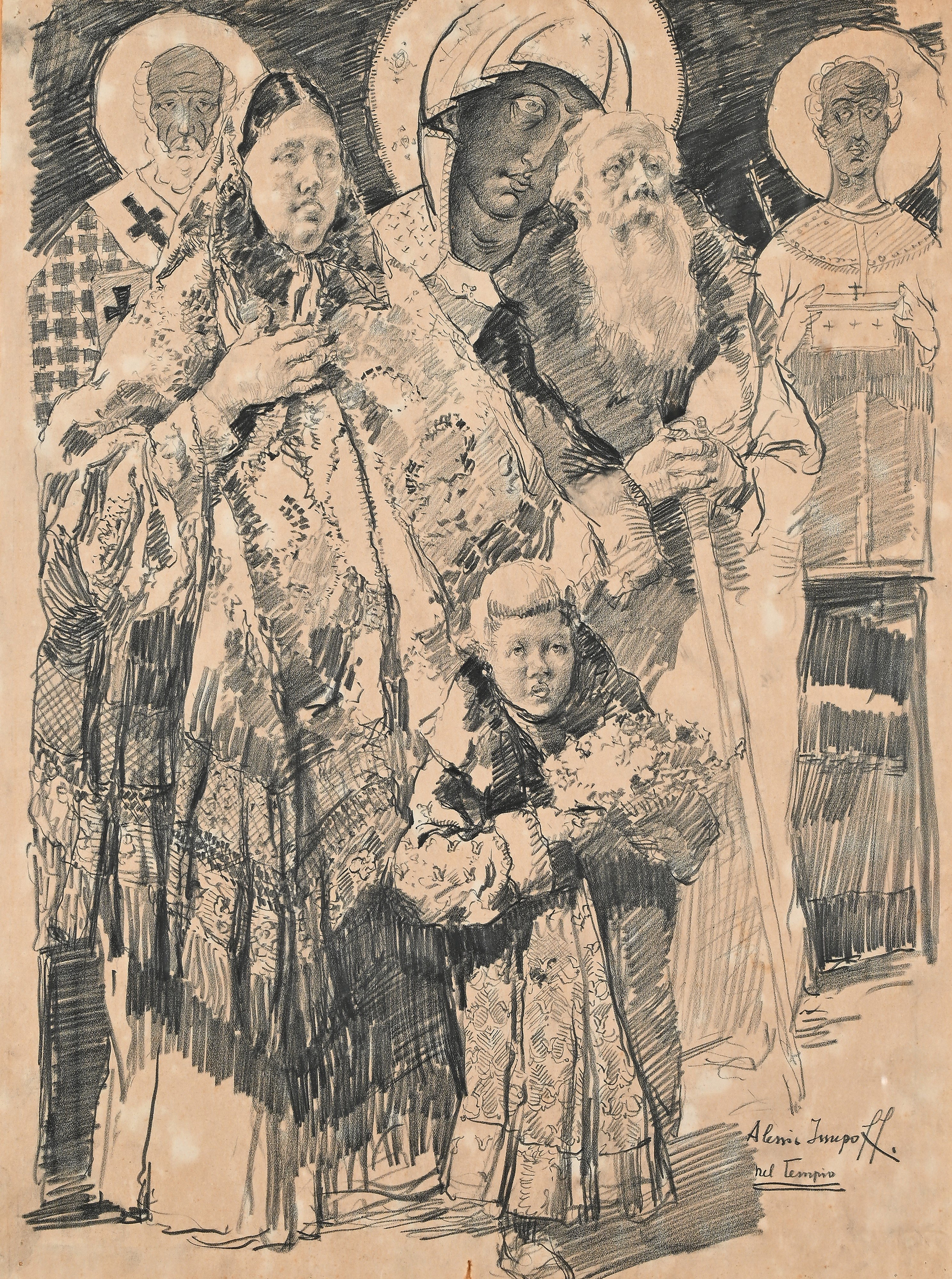 Firmato e intitolato in basso a destra 'Alessio Issupoff. / nel Tempio'
