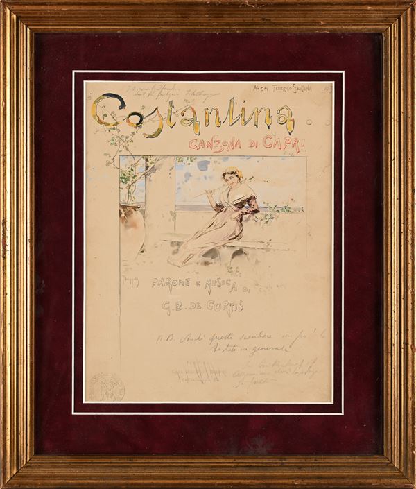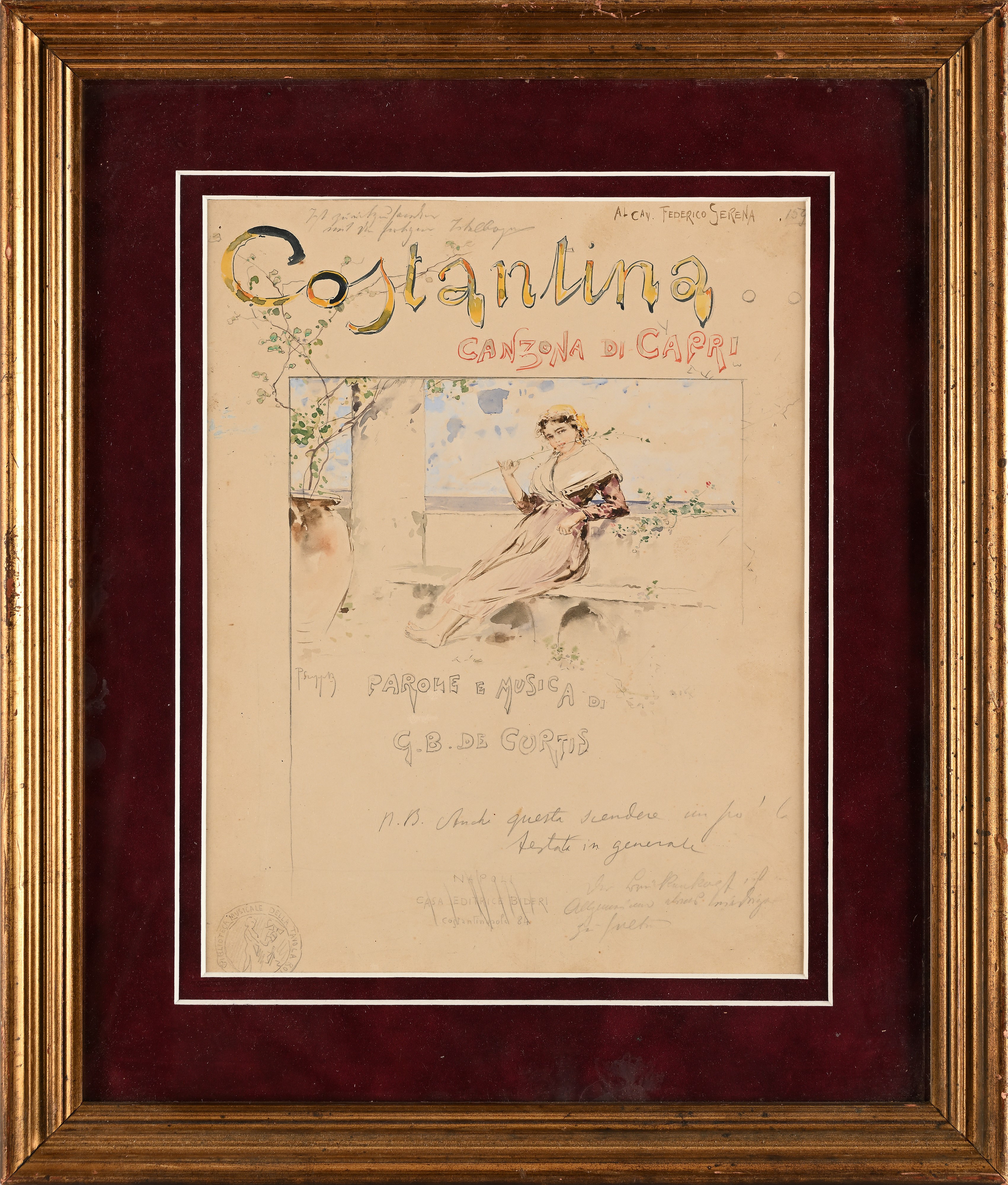 Si tratta del bozzetto per l'omonima cartolina postale, comprendente anche lo spartito musicale di G.B. de Curtis.