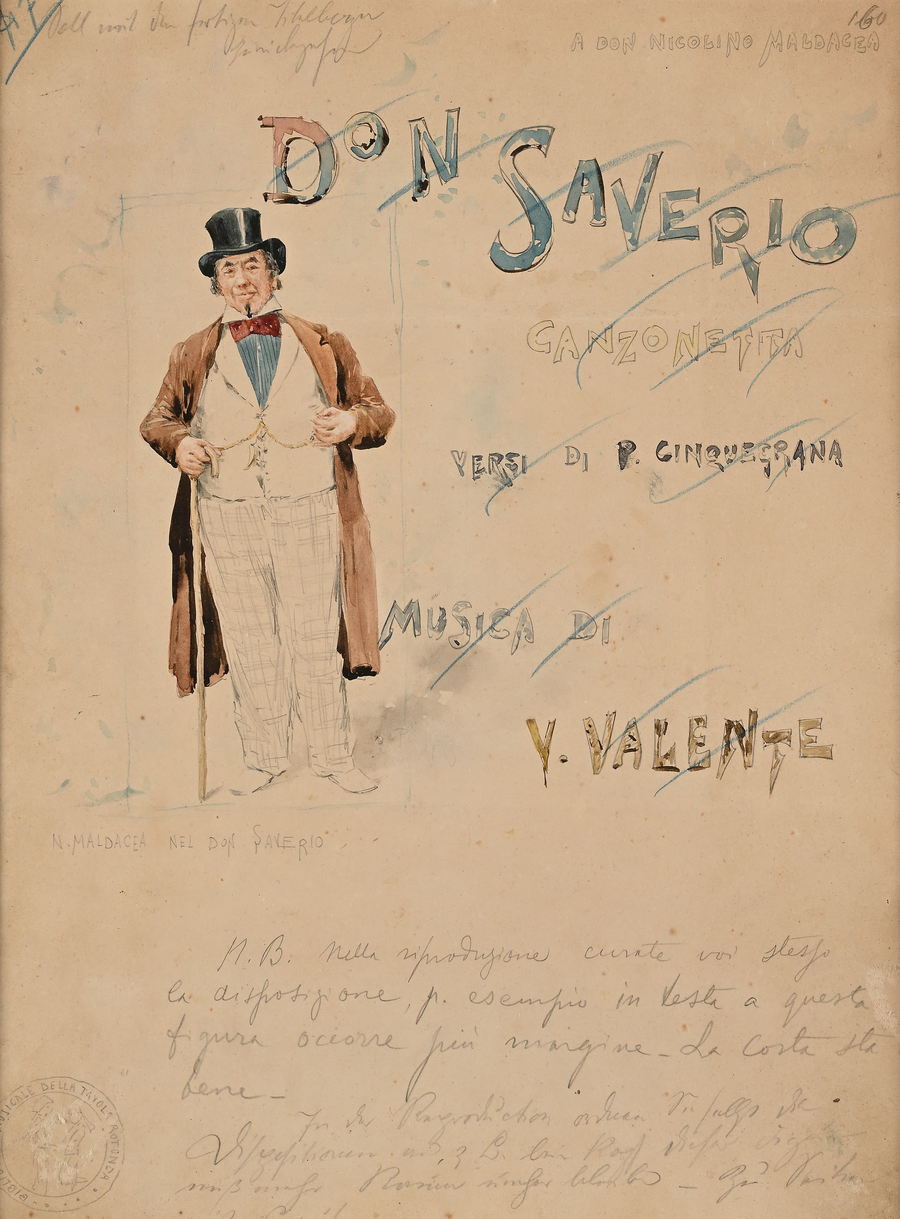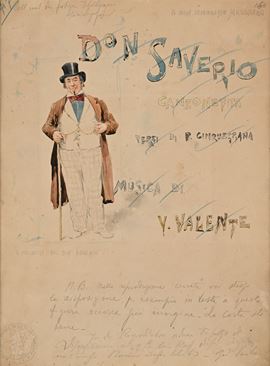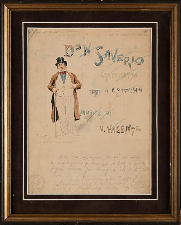 Si tratta del bozzetto per l'omonima cartolina postale, comprendente anche lo spartito musicale di V. Valente.