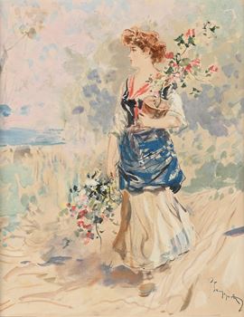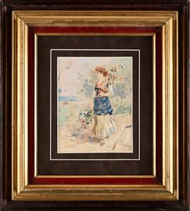 Giovane popolana con vaso e mazzo di fiori