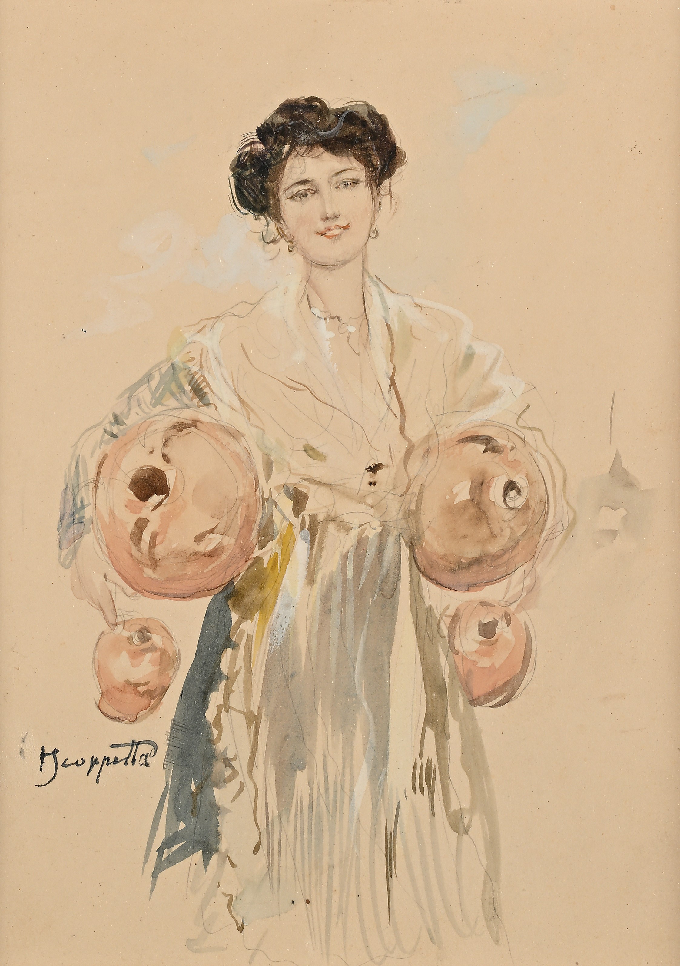 Firmato a sinistra verso il basso. 'P Scoppetta'.