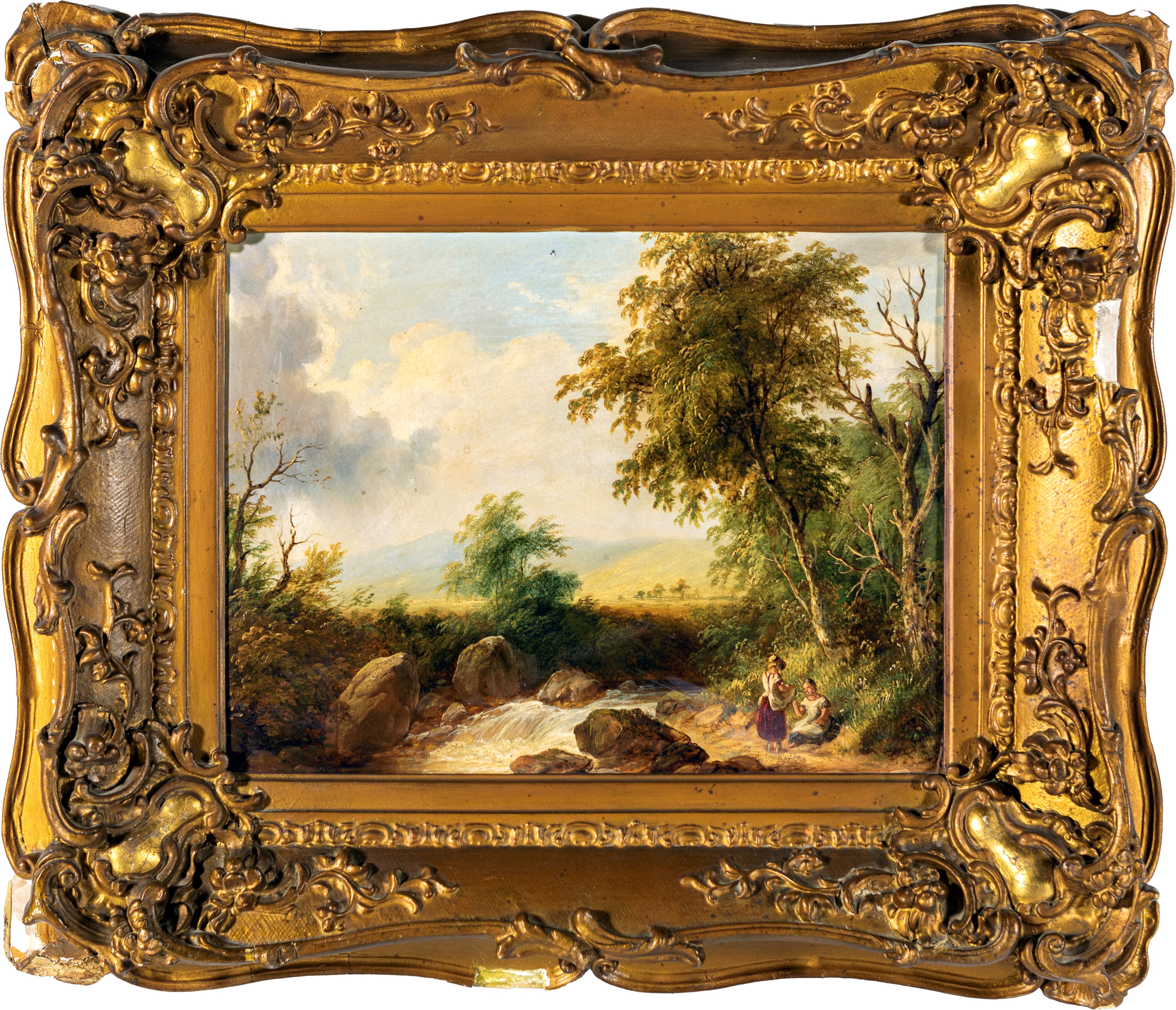 Due giovani donne in sosta presso un ruscello in un paesaggio di campagna