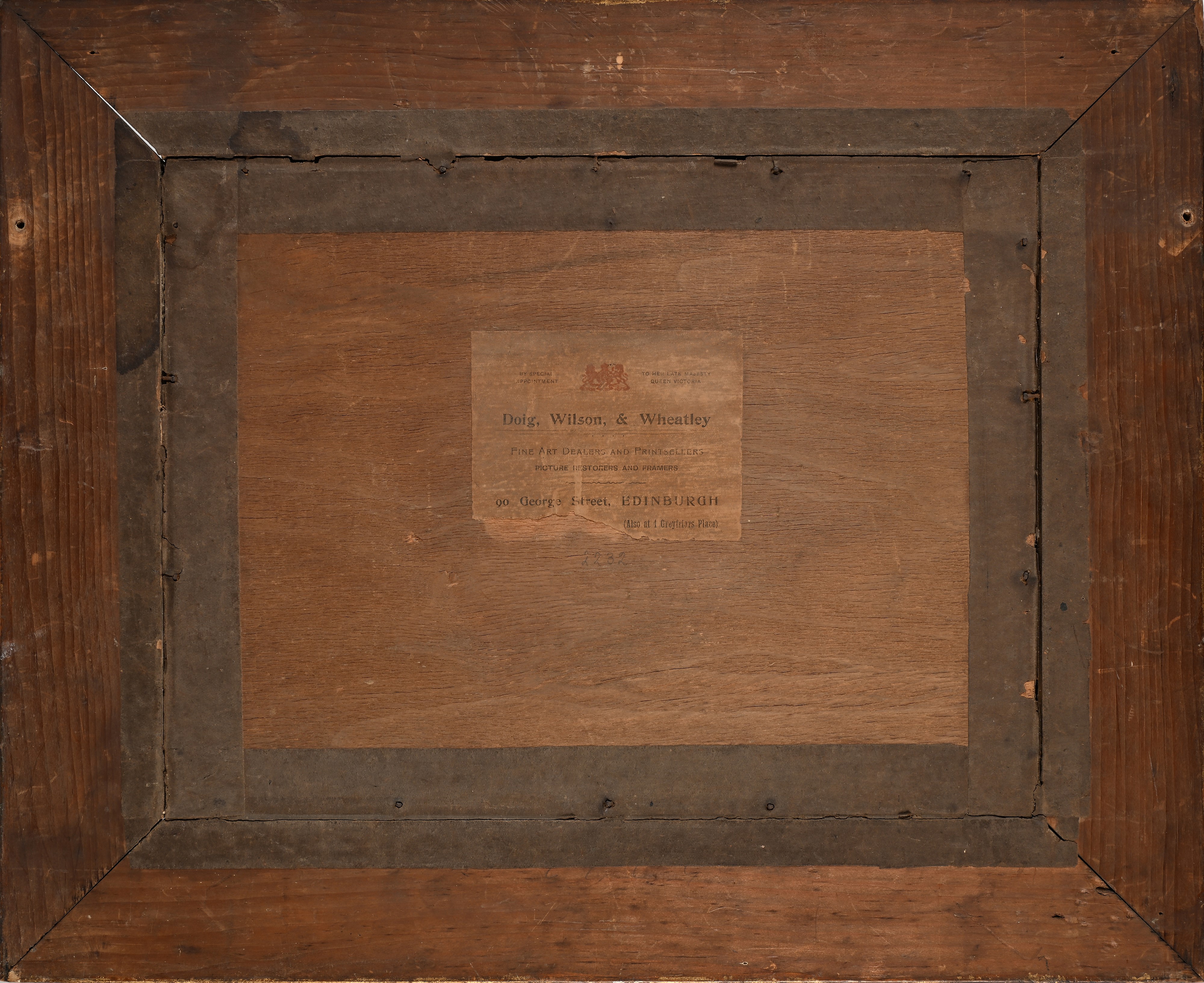 Sul retro, sul legno di supporto, antico cartellino a stampa 'Doig, Wilson, & Wheatley / Edinburgh'.