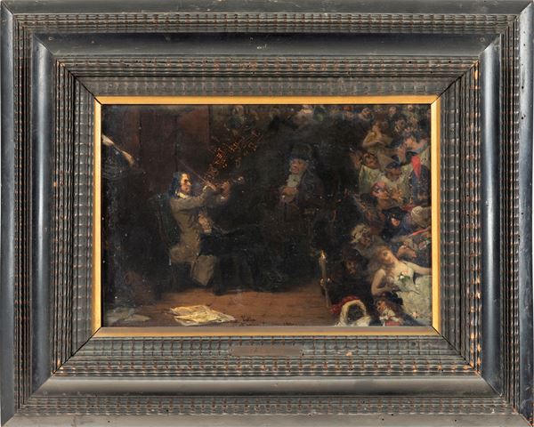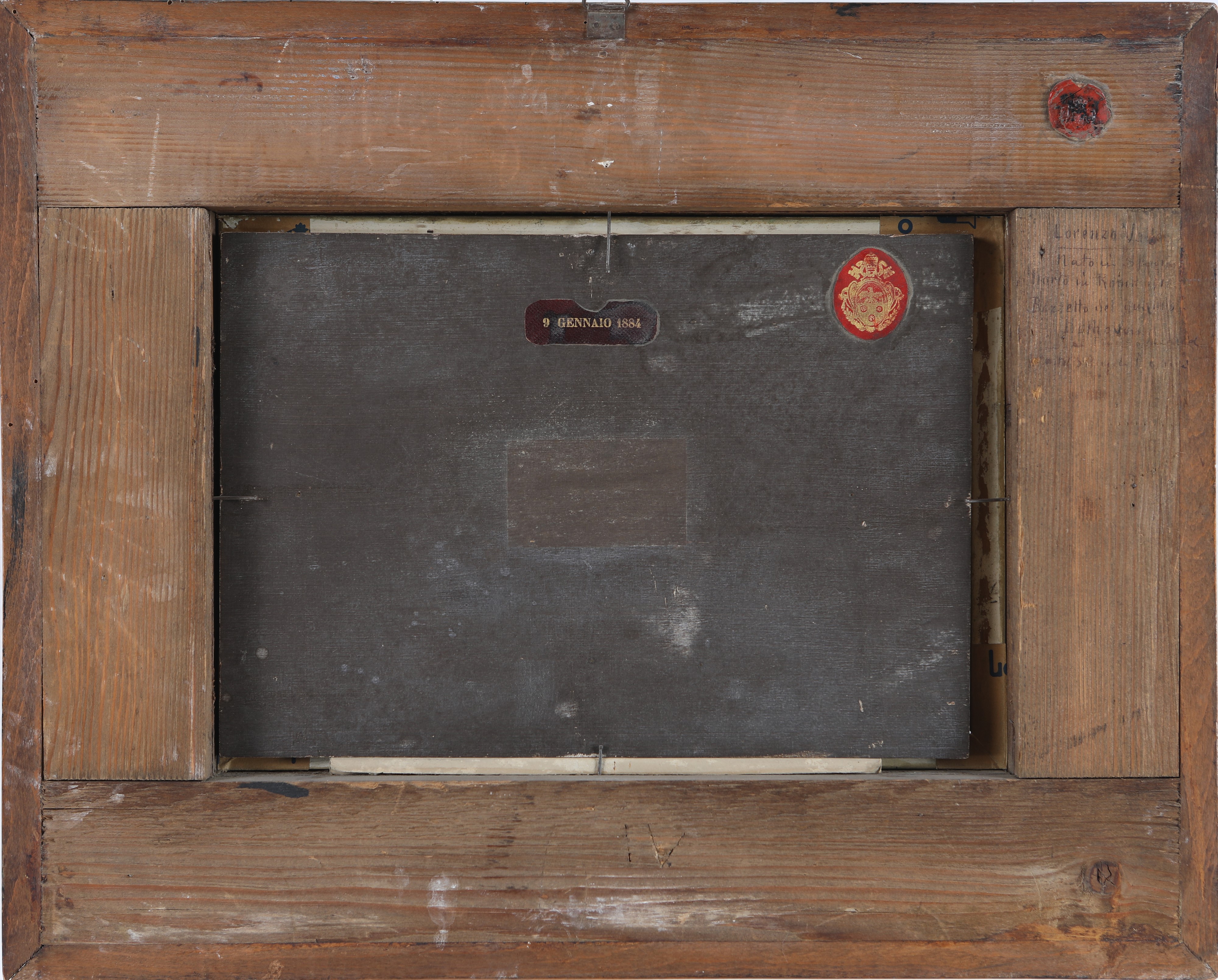 Firmato, dedicato e datato in basso al centro: '.Valles / all'amico P. Levi 1890'.