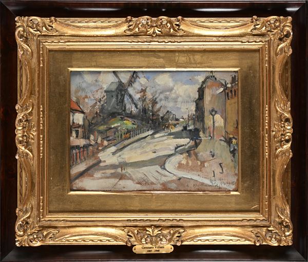 Firmato e datato in basso a destra: "G. Villani / A Montmatre Paris 1926".