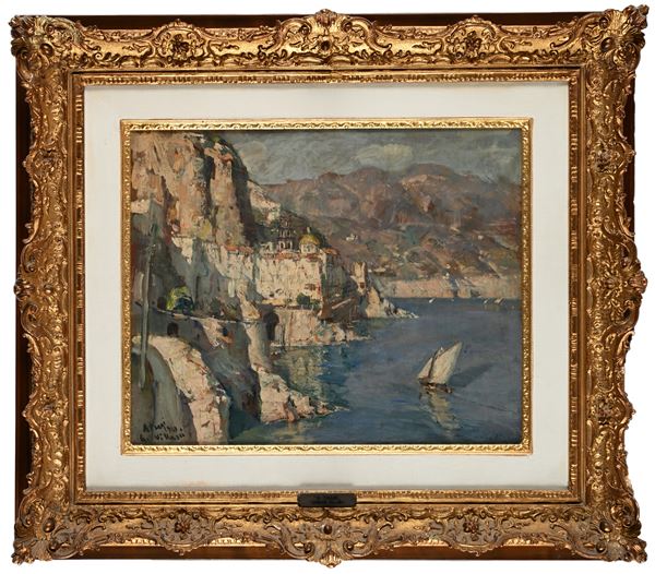 Datato e firmato in basso a sinistra: 'Atrani / 1947. / G. Villani'