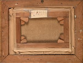 Sul retro, sulla cornice, vecchio cartellino con scritto il nome dell'autore e il titolo dell'opera.