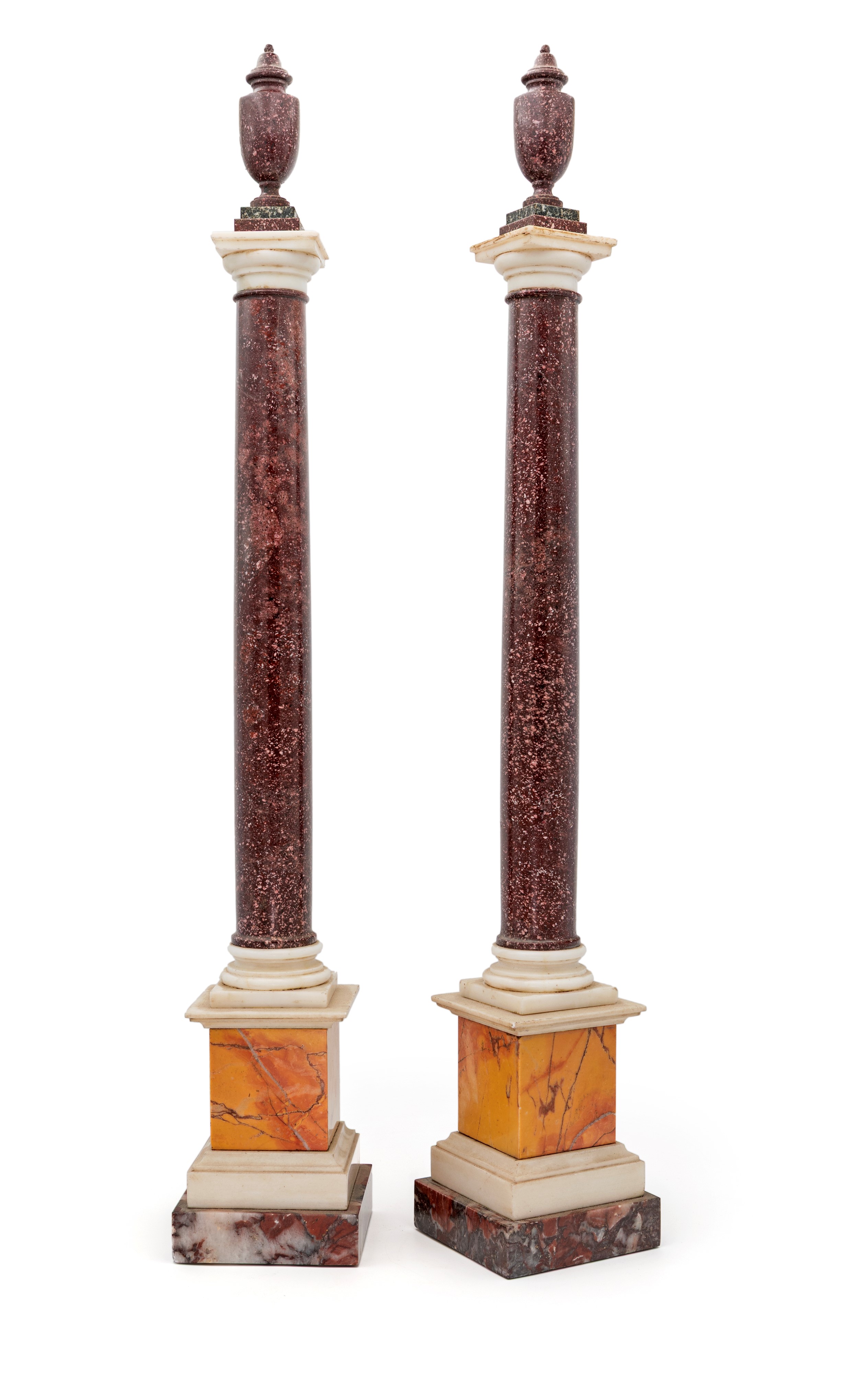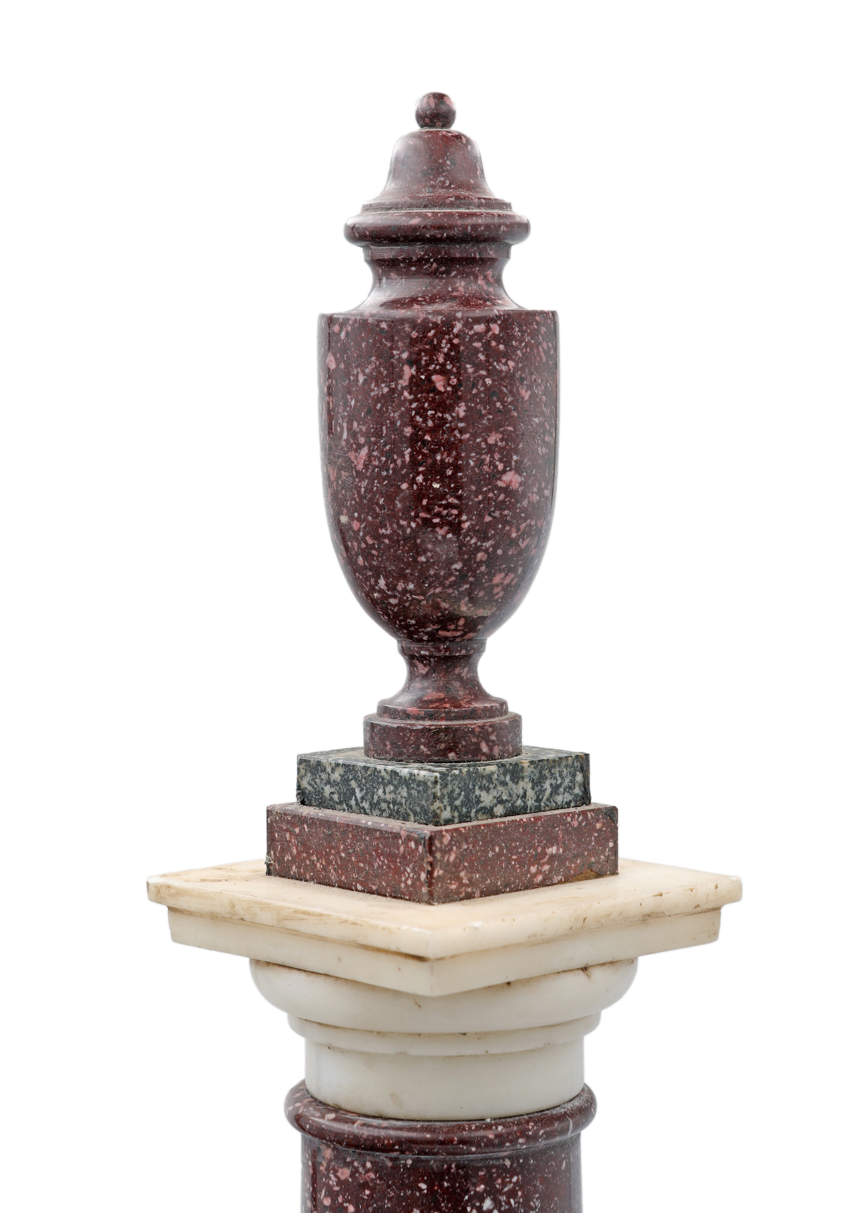 rifinite sulla sommità da vasi canopi, stanti su piedistalli squadrati in marmi giallo antico e africano