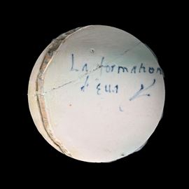 decorata dalle figure di Dio Padre, Adamo ed Eva ambientate nel Giardino dell'Eden. Orlo ondulato, piede mancante. Entro teca in plexiglass nero.