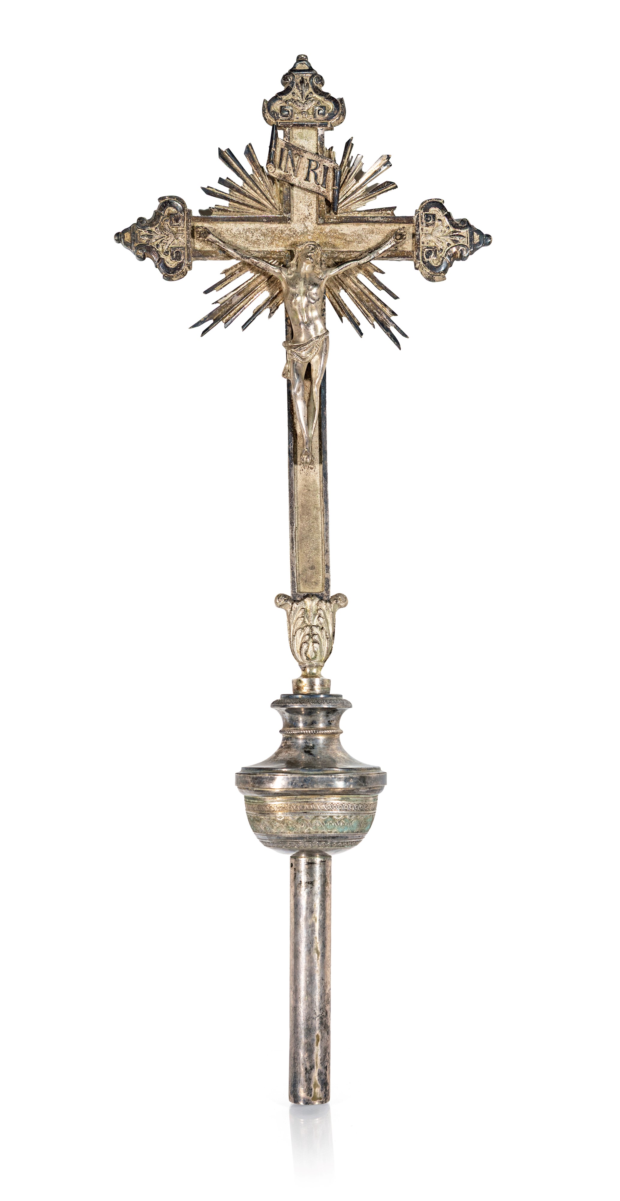 Croce processionale in metallo argentato, XVIII/XIX secolo