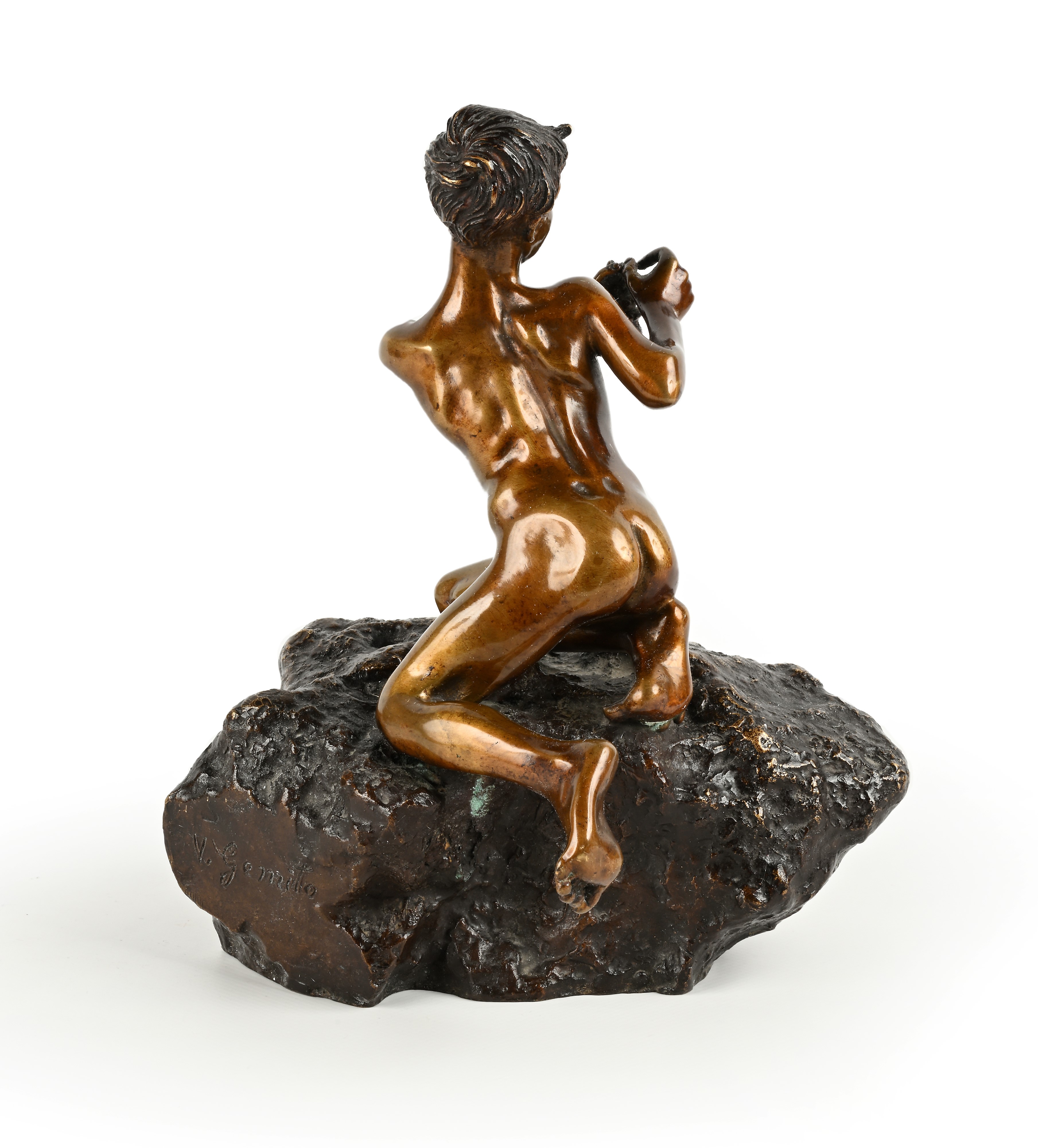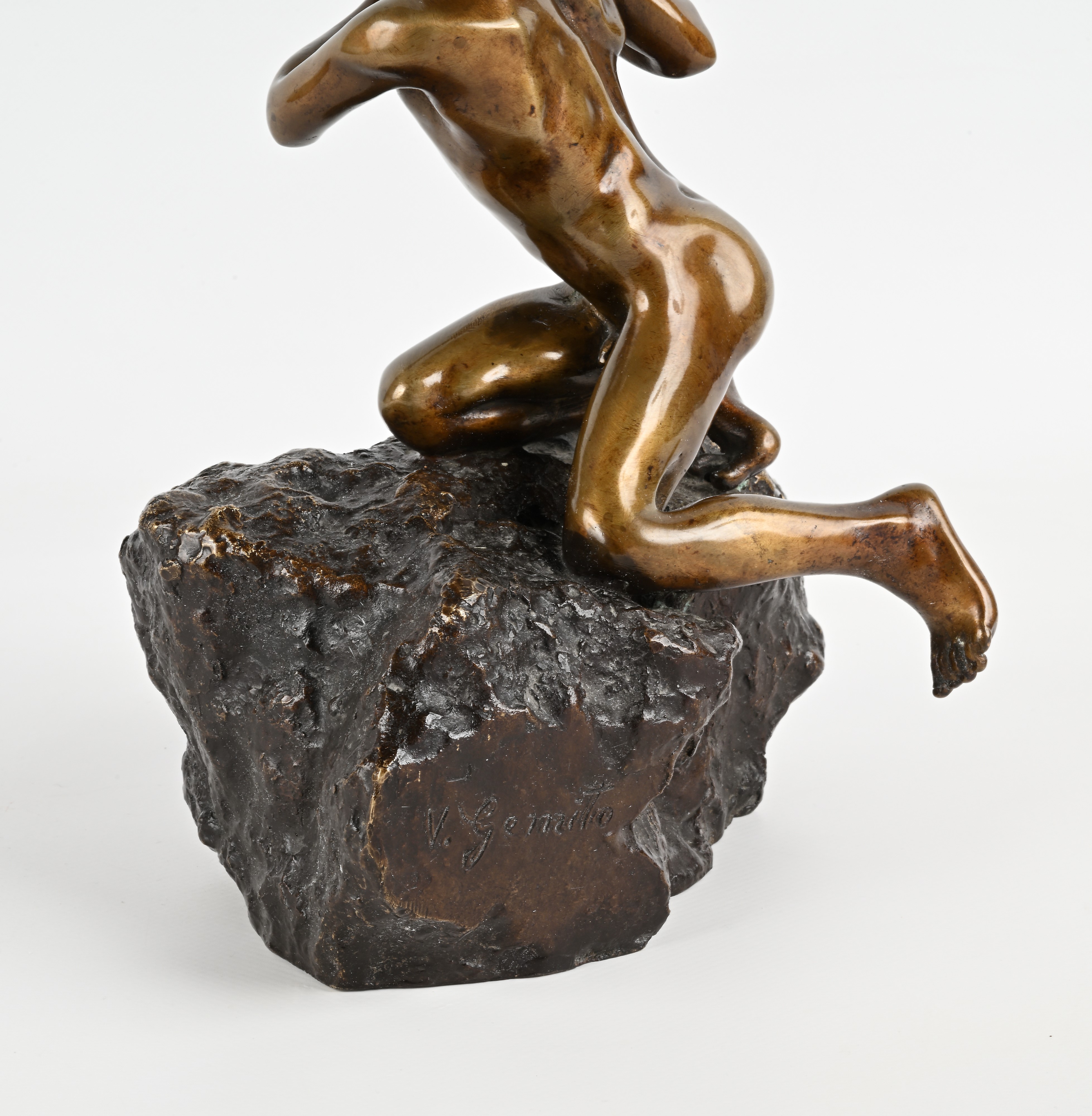 Firma in corsivo incussa al verso, sulla roccia: V. Gemito