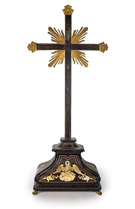 Grande croce da altare in palissandro e bronzo dorato con intarsi in avorio, Italia meridionale, XVII/XVIII secolo