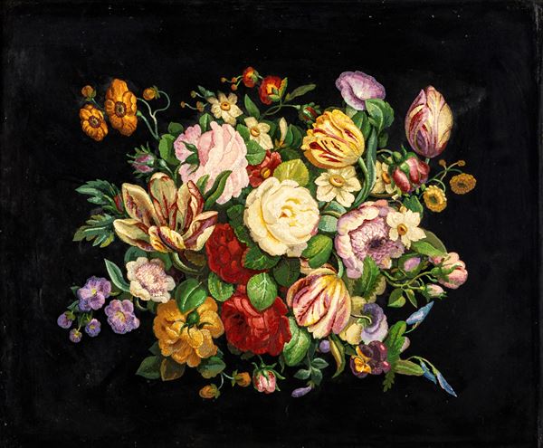 Il tema floreale è affrontato dai mosaicisti per dimostrare il proprio virtuosismo esecutivo. Non era consuetudine dei mosaicisti firmare le proprie composizioni; queste opere erano spesso realizzate come souvenir del Grand Tour.