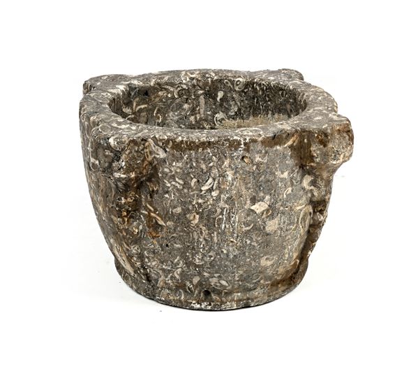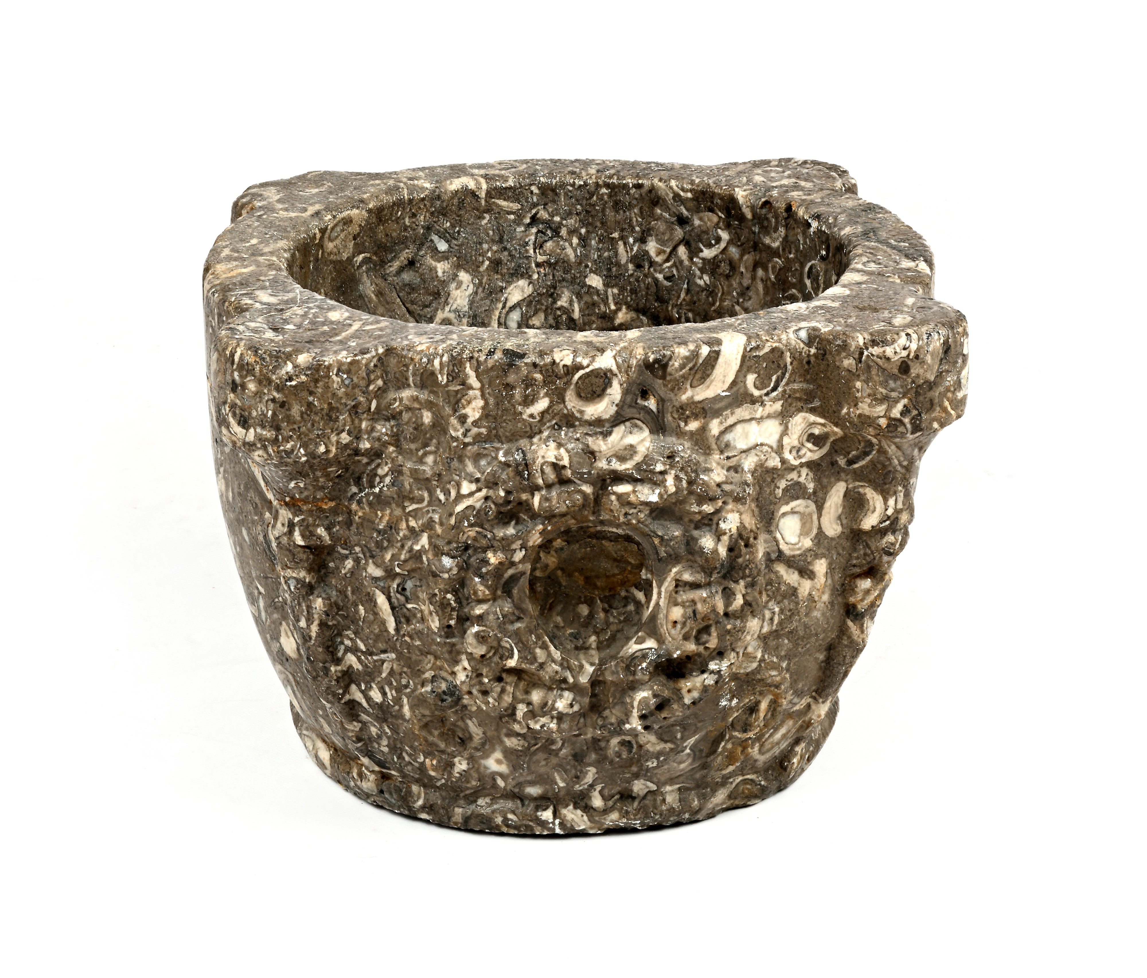 caratterizzato da quattro lobi e da un foro circolare racchiuso da una ghirlanda posto al centro della superficie