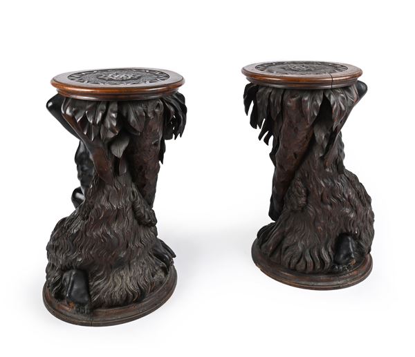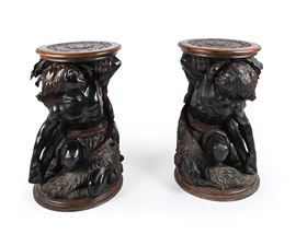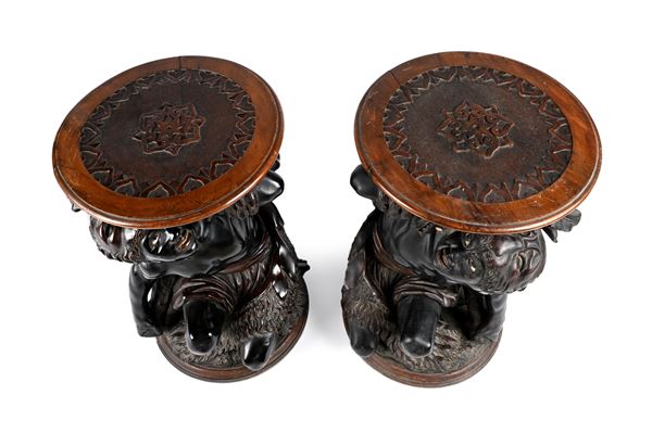 Coppia di sgabelli figurati in legno scolpito ed ebanizzato, Venezia, metà del XIX secolo