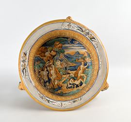 Rinfrescatoio istoriato in maiolica policroma, Urbino, metà XVI secolo