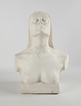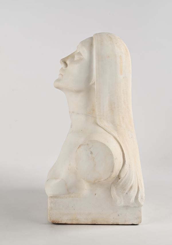 La scultura ritrae una giovane donna in una posa rilassata, con il capo reclinato all'indietro e lunghi capelli a coprire le spalle. Il trattamento del marmo evidenzia una superficie liscia e lucida, conferendo all'opera una qualità sensuale e contemplativa. Questa rappresentazione si distingue per la sua tensione vagamente purista e per l'assenza di dettagli superflui, concentrandosi sulla bellezza e sull'armonia della figura femminile.