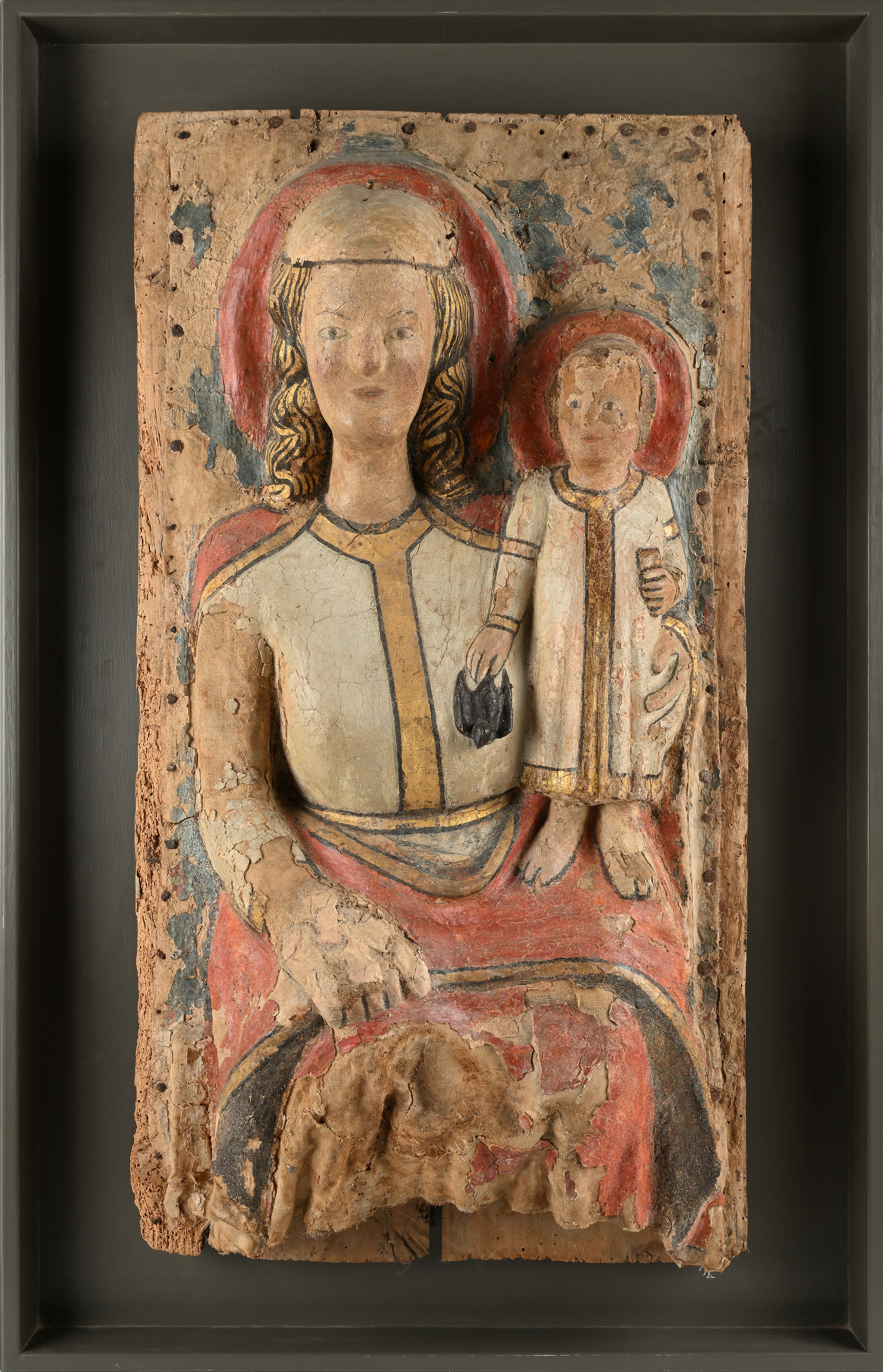 bassorilievo in tela camottata, gessata e dipinta, applicato su tavola