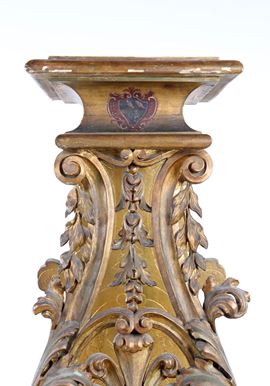 Sgabellone in legno intagliato e dorato, Emilia, XVII secolo