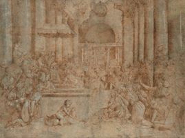 Il disegno replica l'affresco situato nella Sala di Costantino nelle Stanze Vaticane.