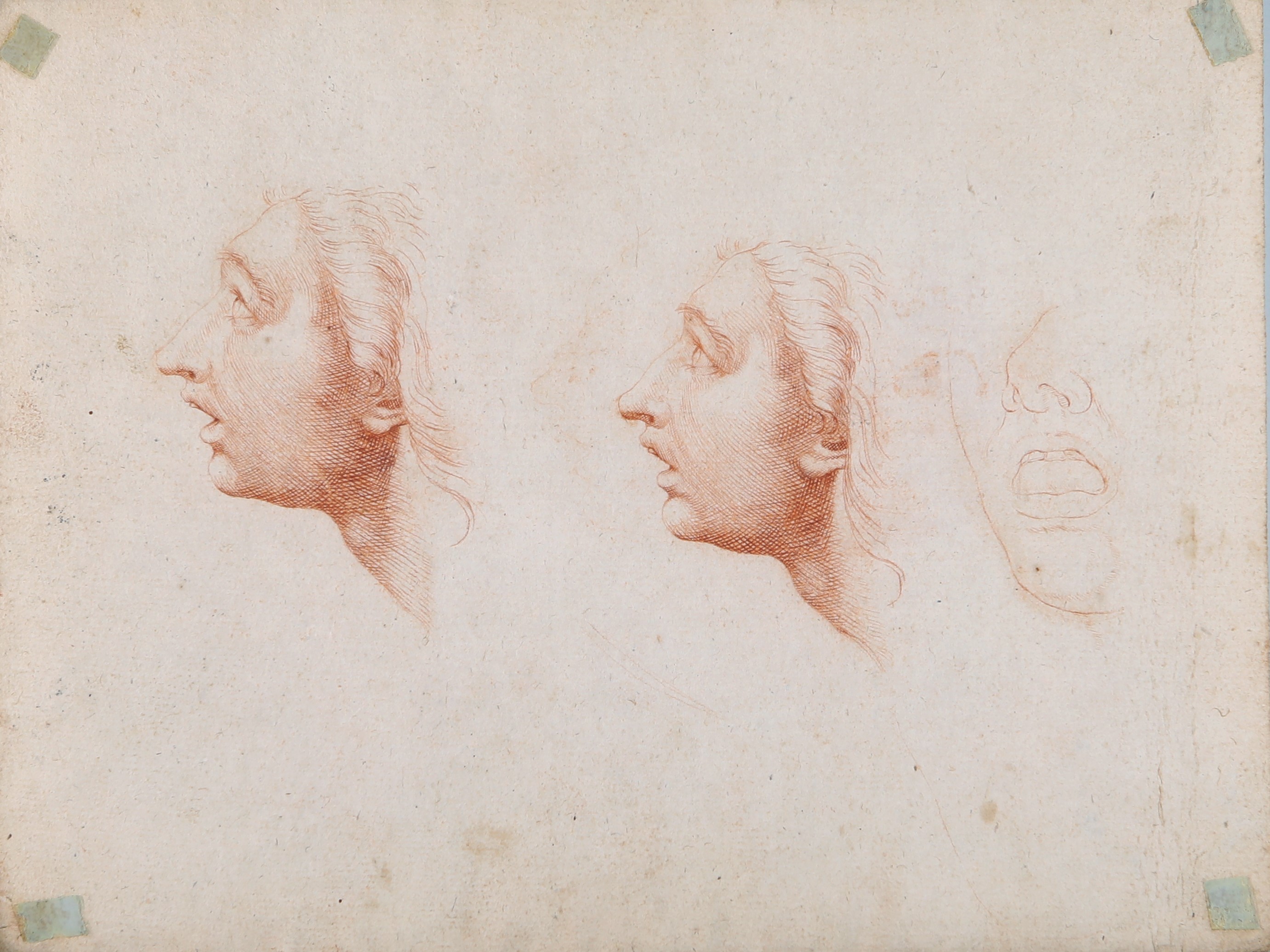 Recto: Studi di volti, Verso: Studio di due profili femminili