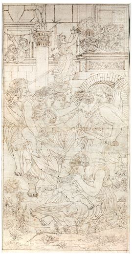 Il foglio riproduce la composizione, con monumenti, del cartone preparatorio realizzato da Raffaello per la bottega di Pieter van Aelst a Bruxelles, che lo tradusse in arazzo oggi conservato ai Musei Vaticani.