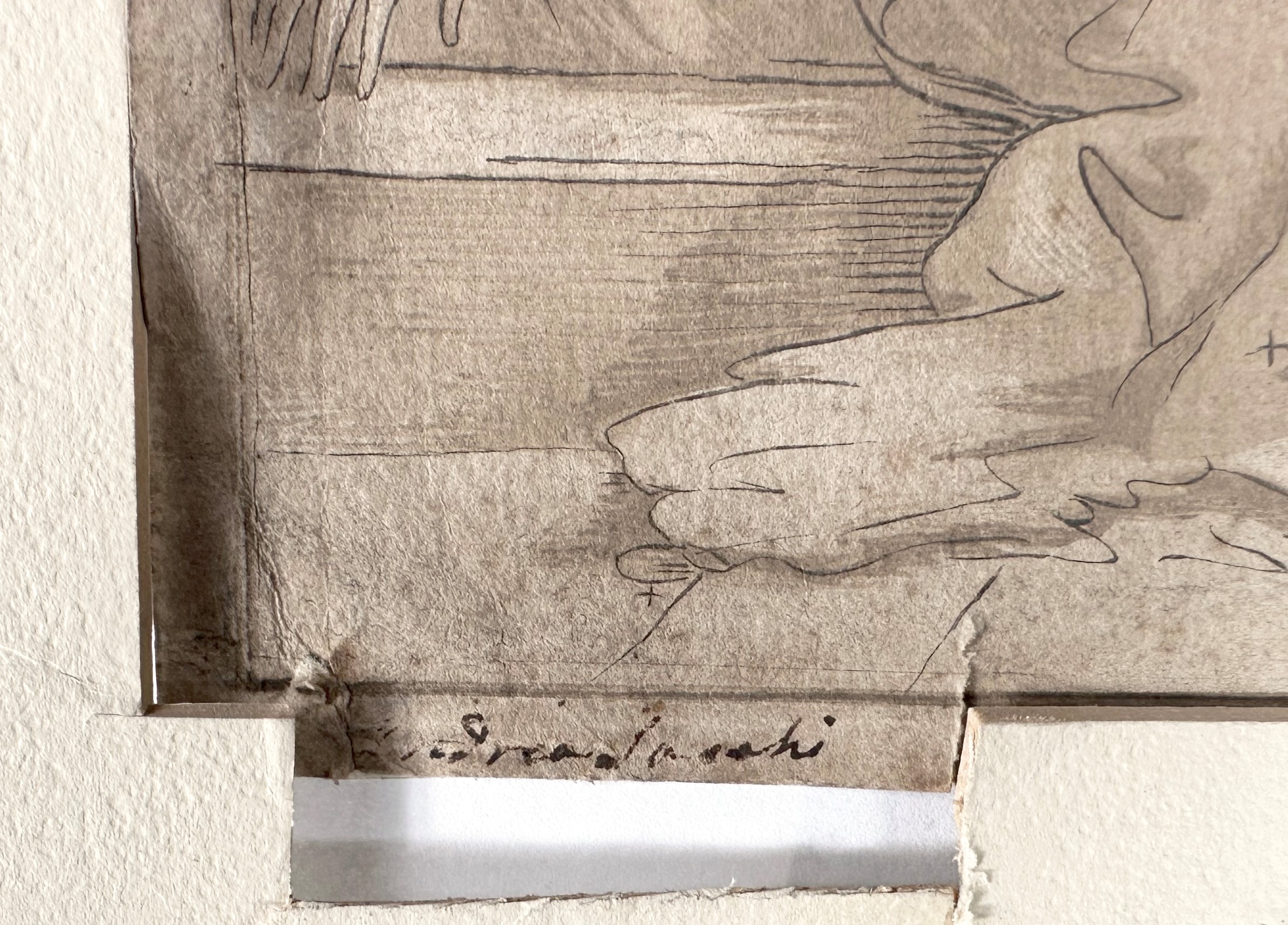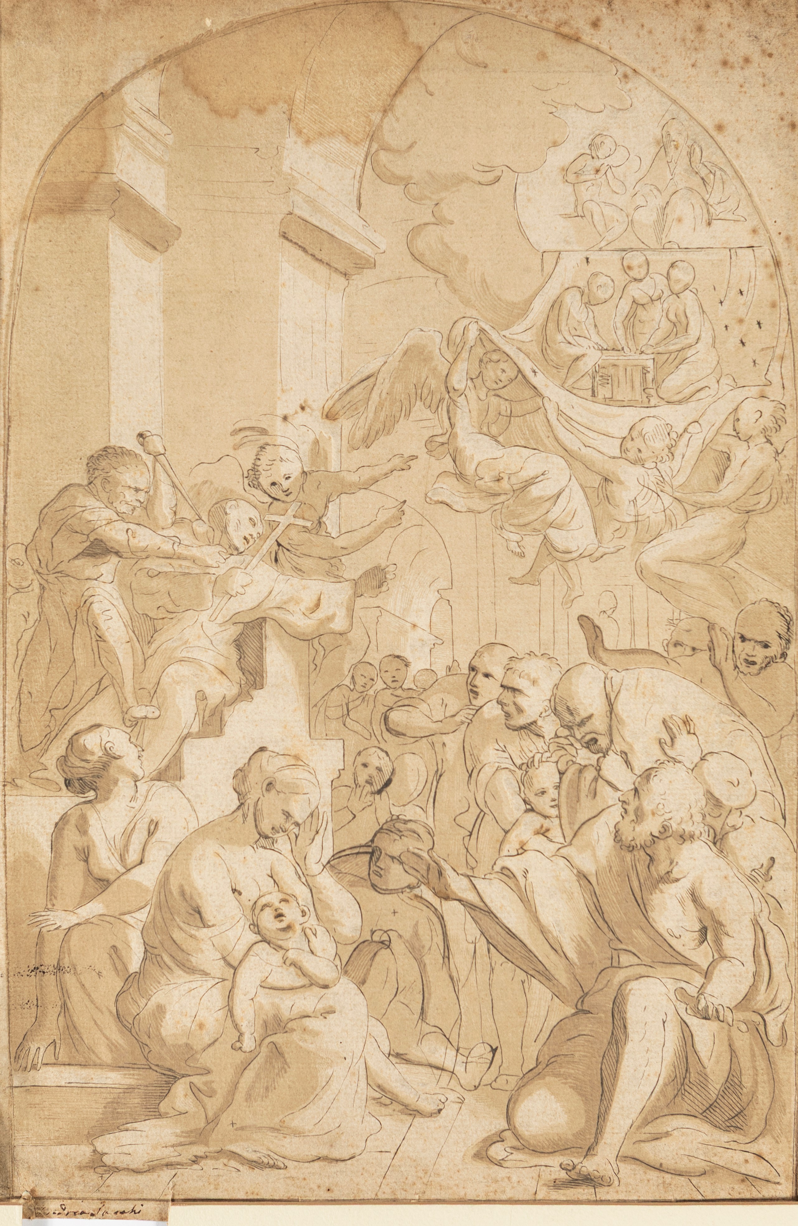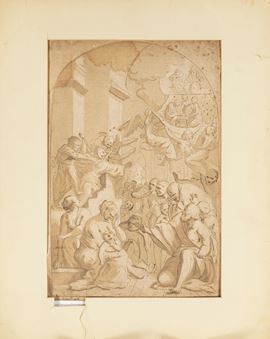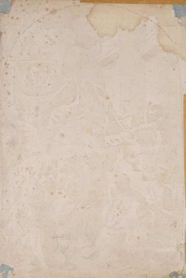 Il foglio riprende un disegno di Pietre Testa conservato anticamente nel Gabinetto di Pierre Crozat