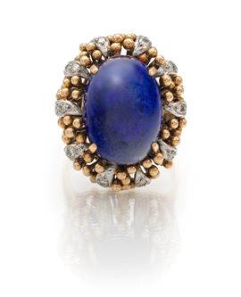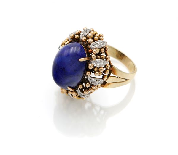 Anello a cupola in oro, lapislazzuli e brillanti