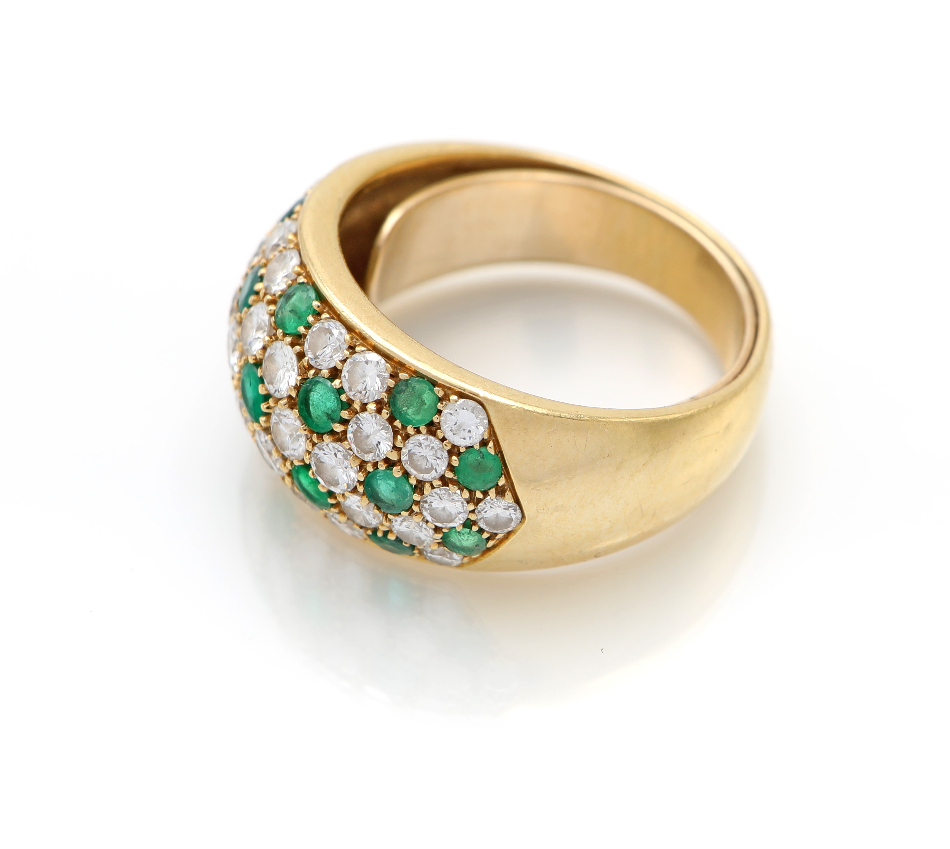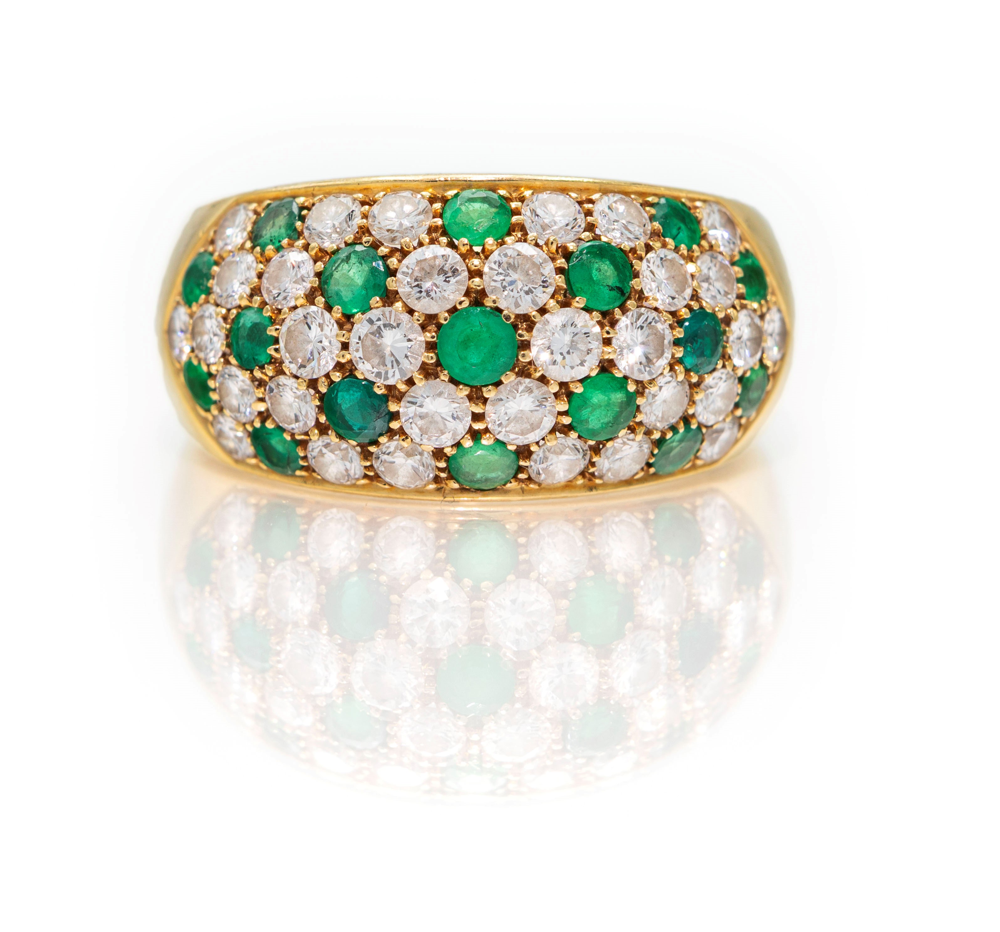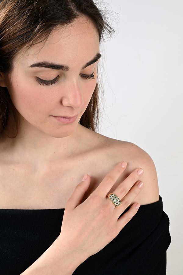 Anello a fascia in oro, brillanti e smeraldi