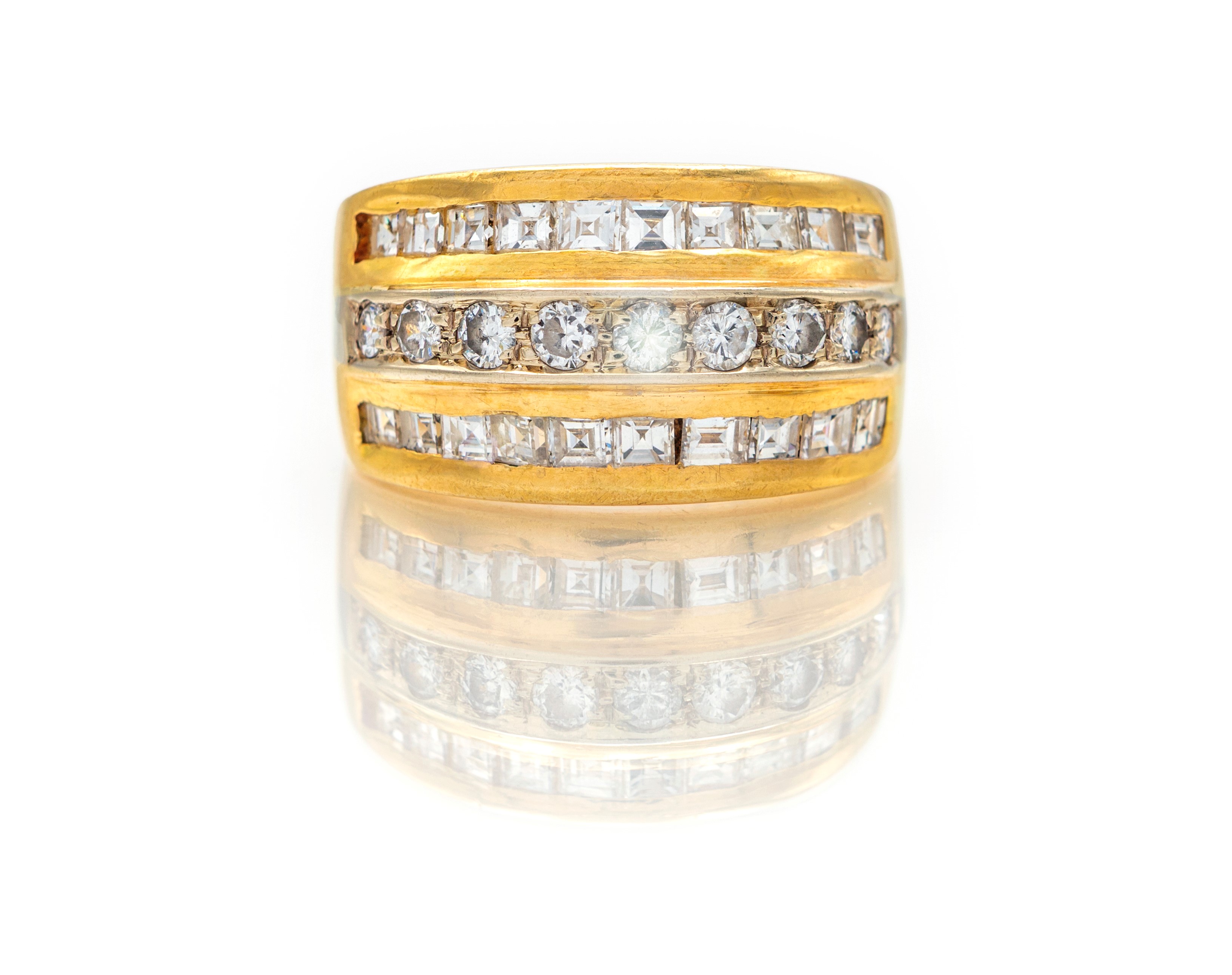 Oro giallo 750/000. Diamanti in taglio rotondo brillante e carré ct. 0,50 ca. Peso complessivo gr. 6,10